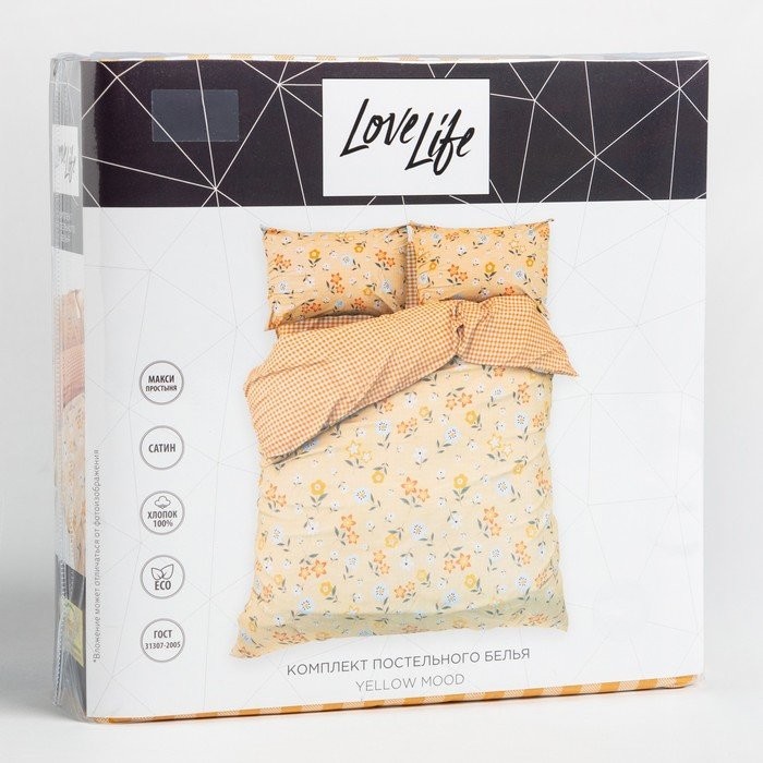 Постельное бельё LoveLife евро Yellow mood 200×217 см, 225×240 см, 50х70см-2шт, 100%хлопок, сатин, 125г/м²