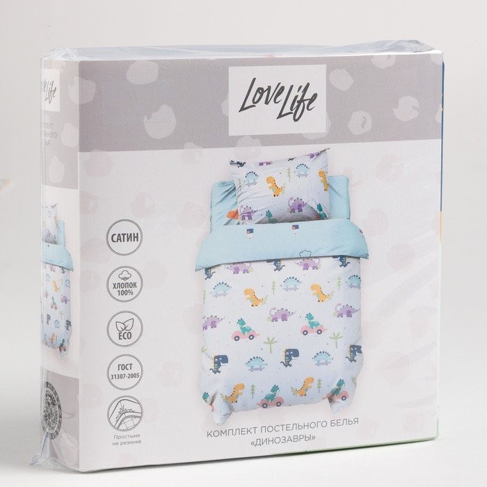 Постельное бельё 1.5сп LoveLife «Динозавры» 143×215 см, 150×214 см, 50×70 см-1 шт, 125г/м2 сатин