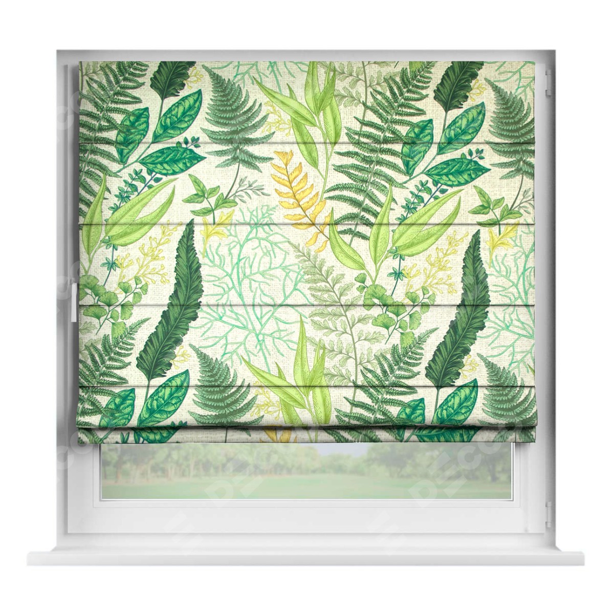 Римская штора производителя «Cortin», устанавливается на створку окна, пошита из ткани «Весна». Штора шьётся по индивидуальным размерам, для данного типа римской шторы возможная ширина от 35 до 150 см., высота до 250 см.