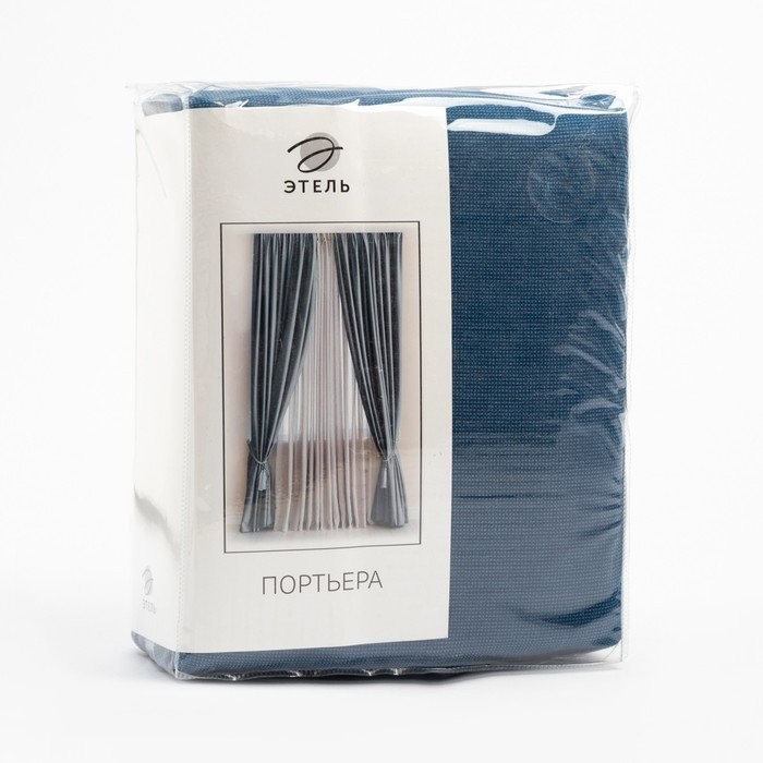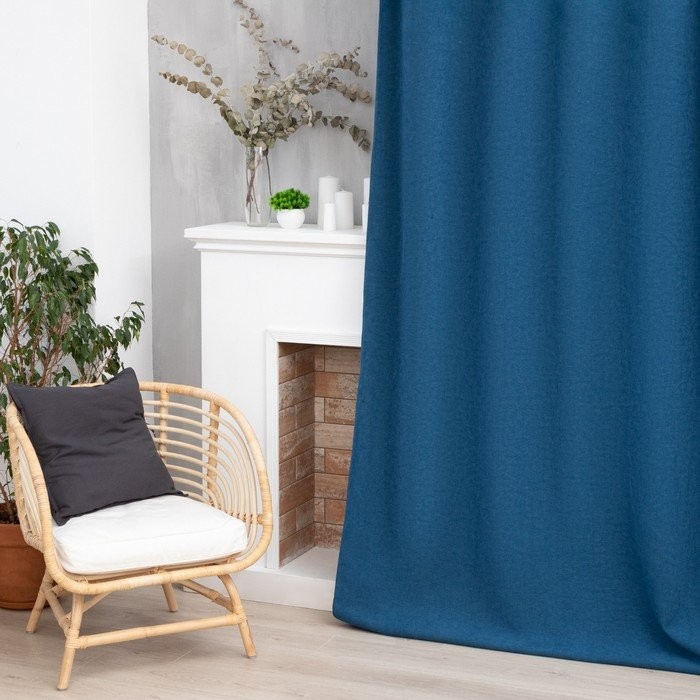 Штора портьерная Этель «Структурная», цвет синий, на шторной ленте, 250×265 см, 100% п/э