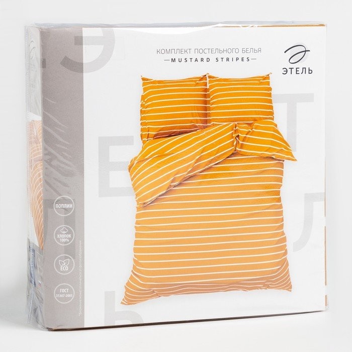 Постельное бельё Этель Евро Mustard stripes 200х217см, 220х240см, 70х70см-2 шт, 100% хлопок, поплин