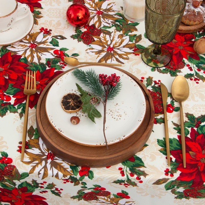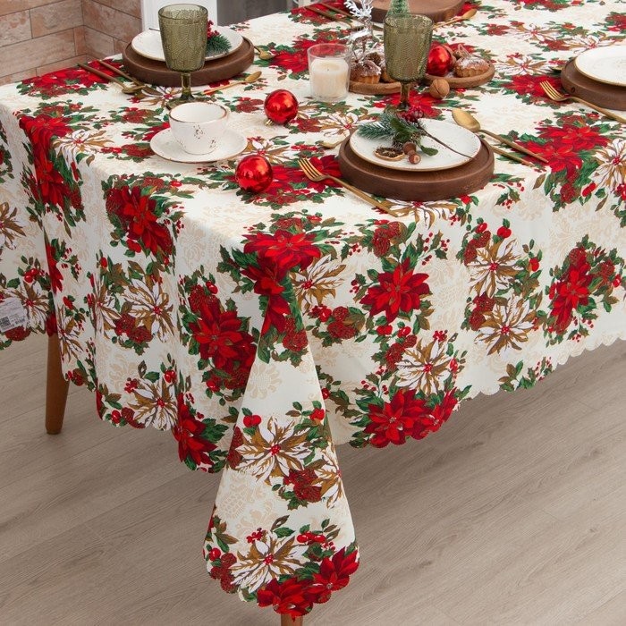 Скатерть Доляна «Новогодние украшения» 145×220 см, 100% п/э