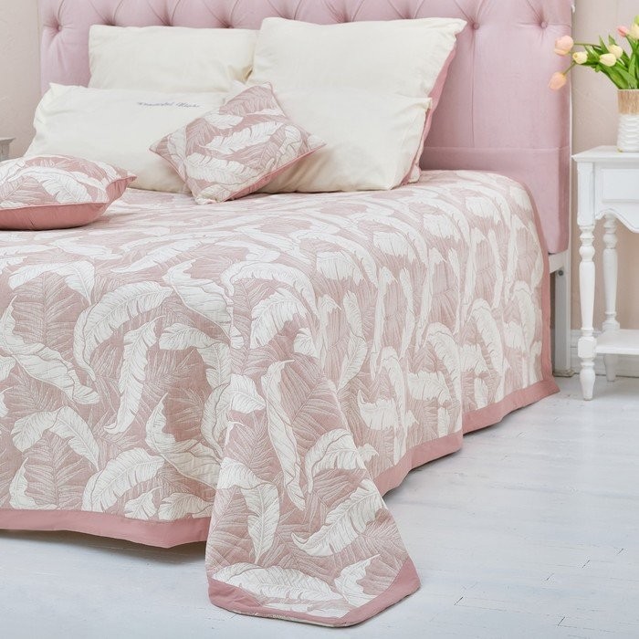 Покрывало хлопковое Этель «Перья» 180×240 см, цвет бежевый, 100% хлопок, 300гр/м2