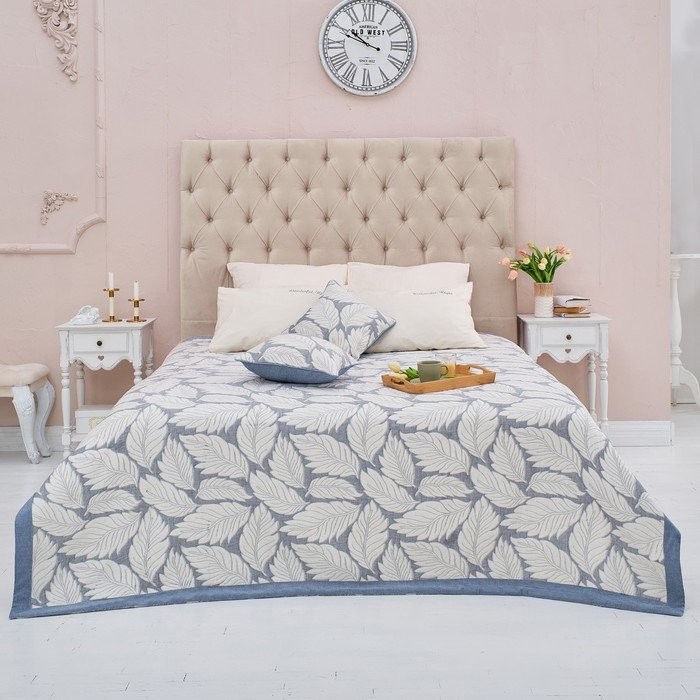 Покрывало хлопковое Этель «Листопад» 220×240 см, цвет синий, 100% хлопок, 300гр/м2