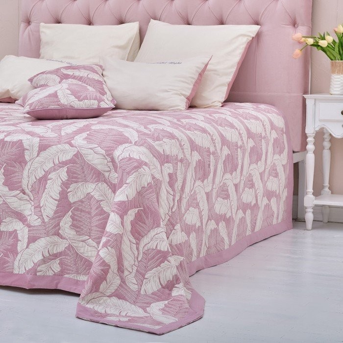 Покрывало хлопковое Этель «Перья» 220×240 см, цвет фиолетовый, 100% хлопок, 300гр/м2
