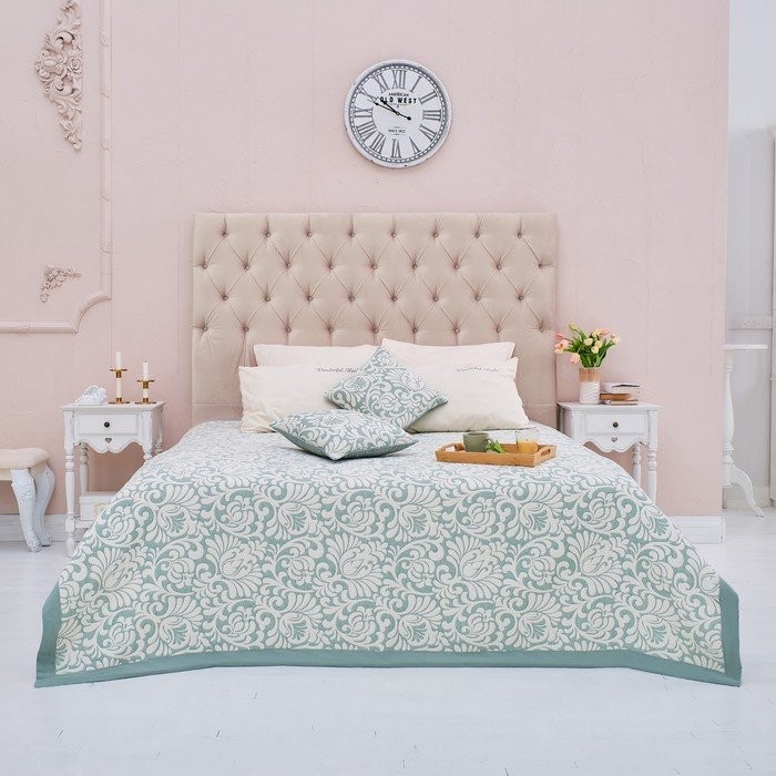 Покрывало хлопковое Этель «Узоры» 220×240 см, цвет зелёный, 100% хлопок, 300гр/м2