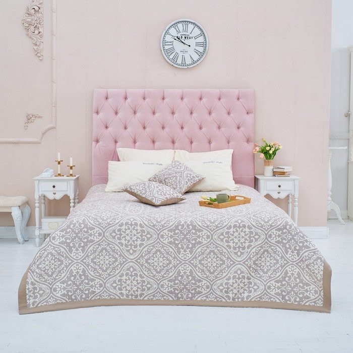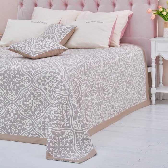 Покрывало хлопковое Этель «Орнамент» 150×240 см, цвет серый, 100% хлопок, 300гр/м2