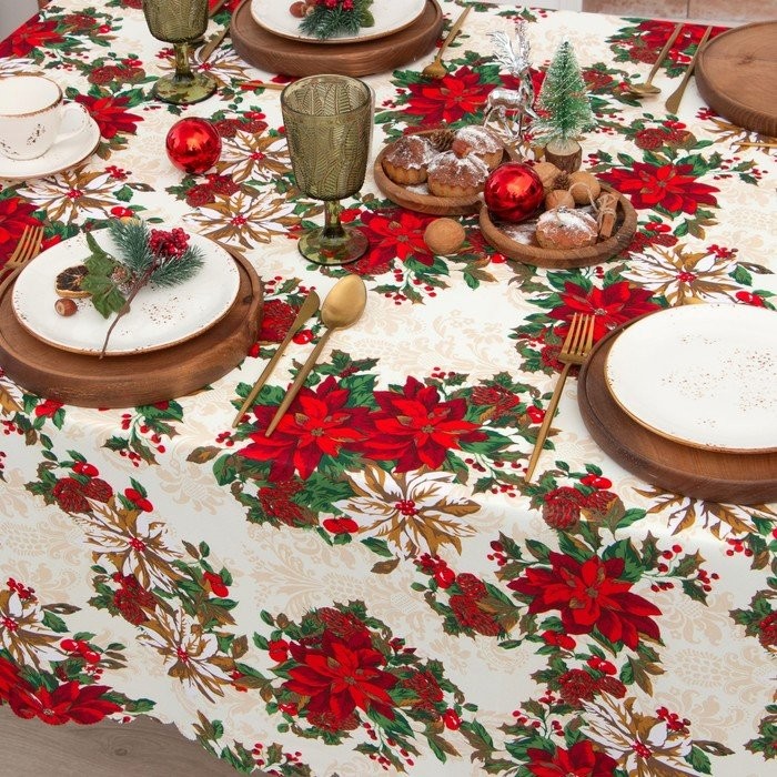 Скатерть Доляна «Новогодние украшения» 145×180 см, 100% п/э