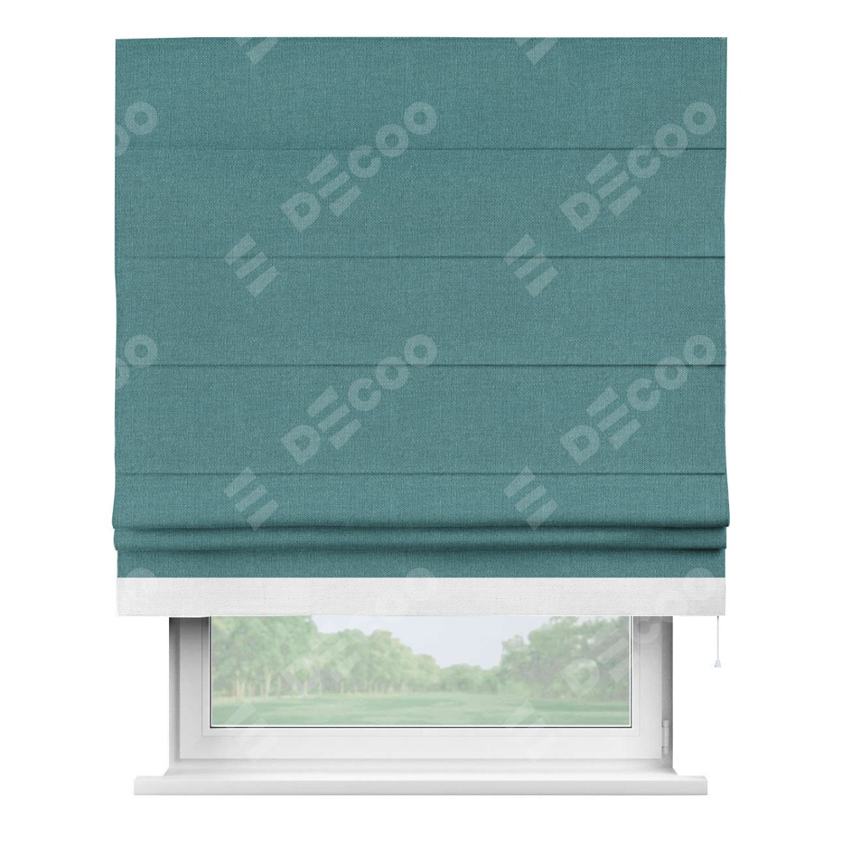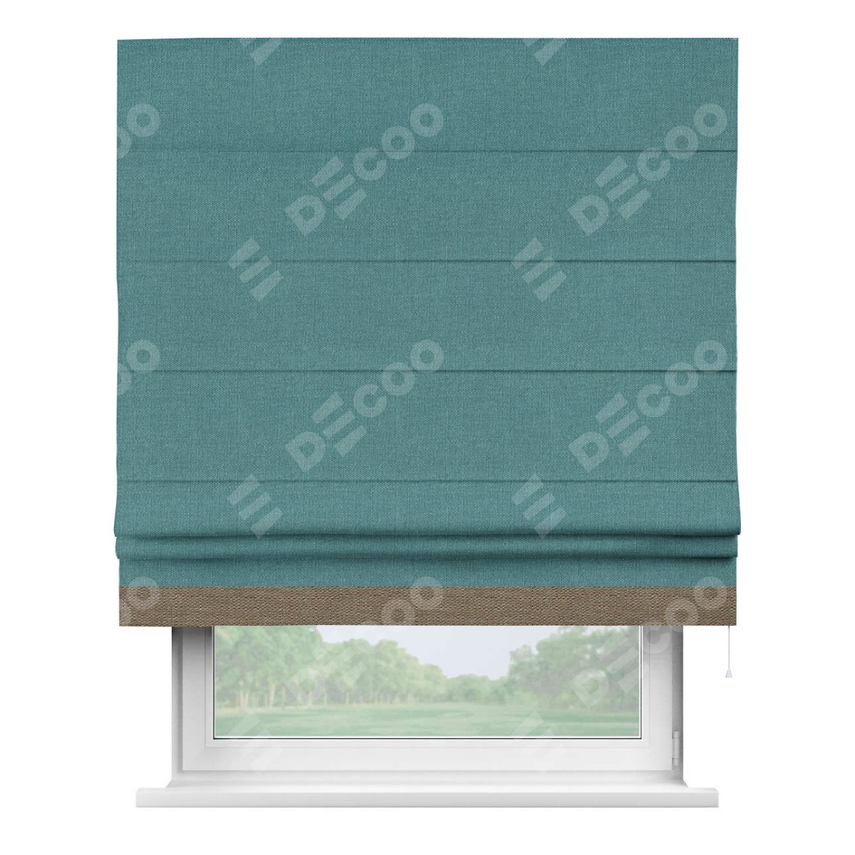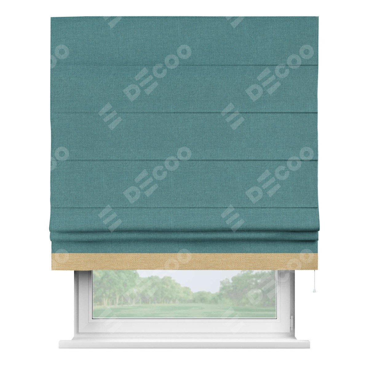 Римская штора «Кортин» с кантом Джестер, для проема, ткань лён бирюзовый