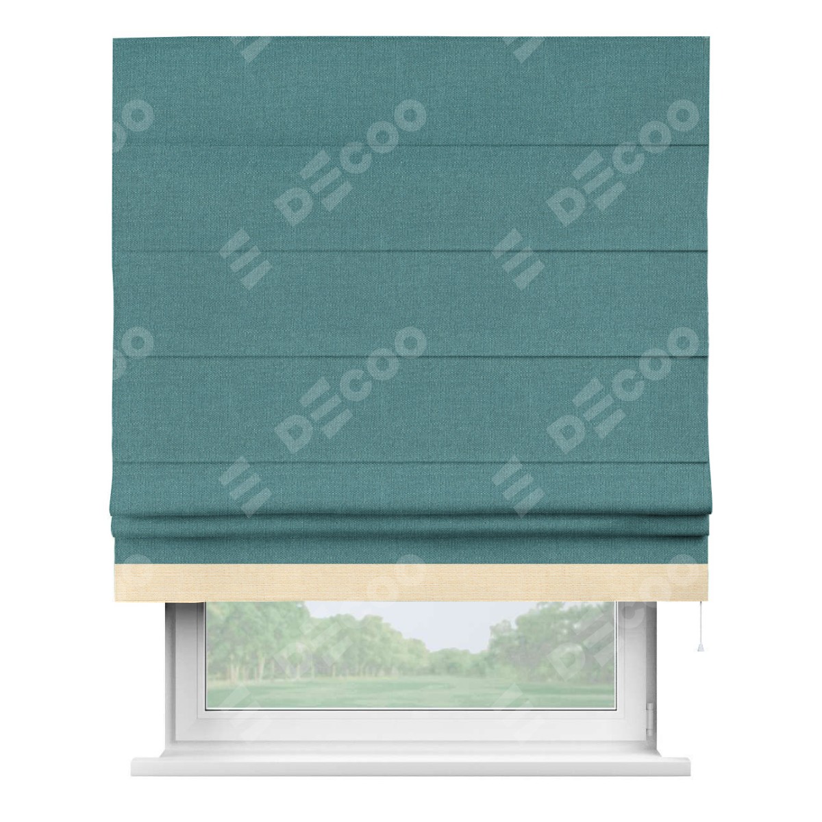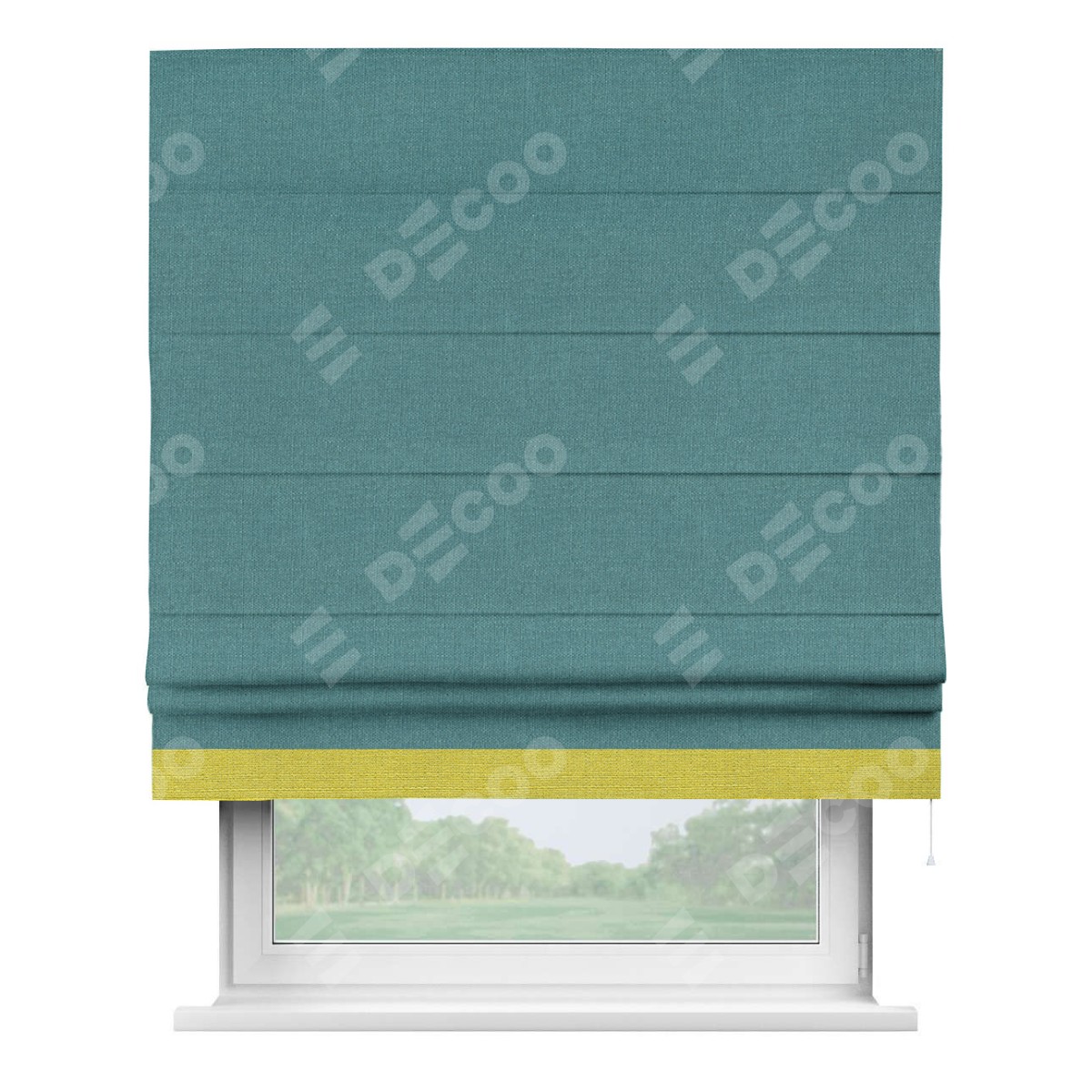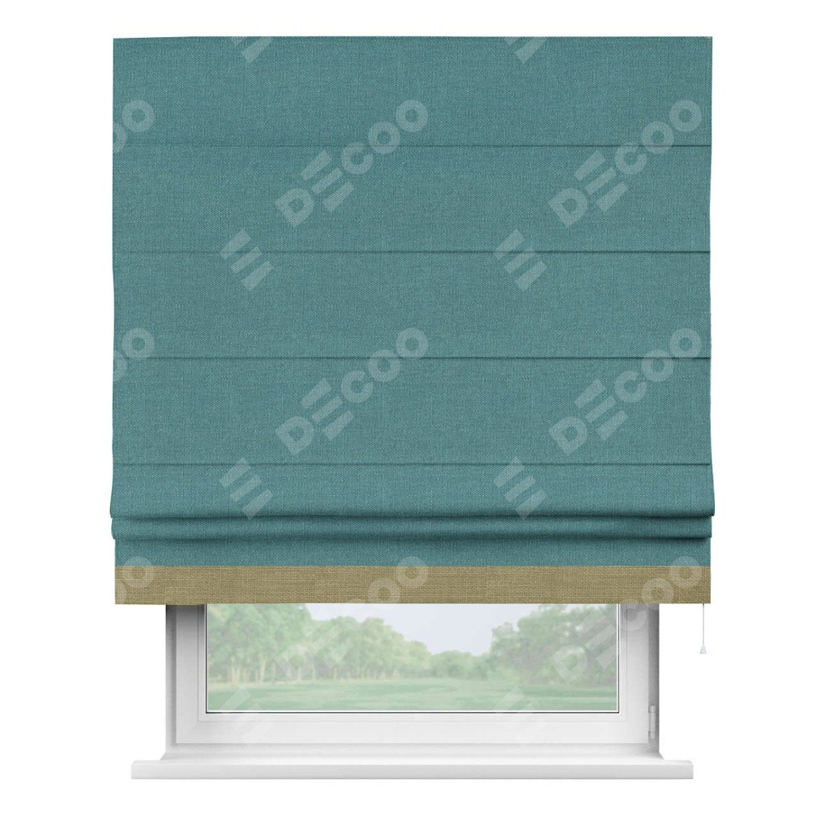 Римская штора «Кортин» с кантом Джестер, для проема, ткань лён бирюзовый