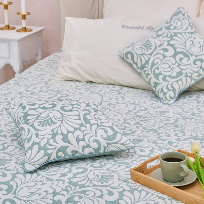 Покрывало хлопковое Этель «Узоры» 180×240 см, цвет зелёный, 100% хлопок, 300гр/м2