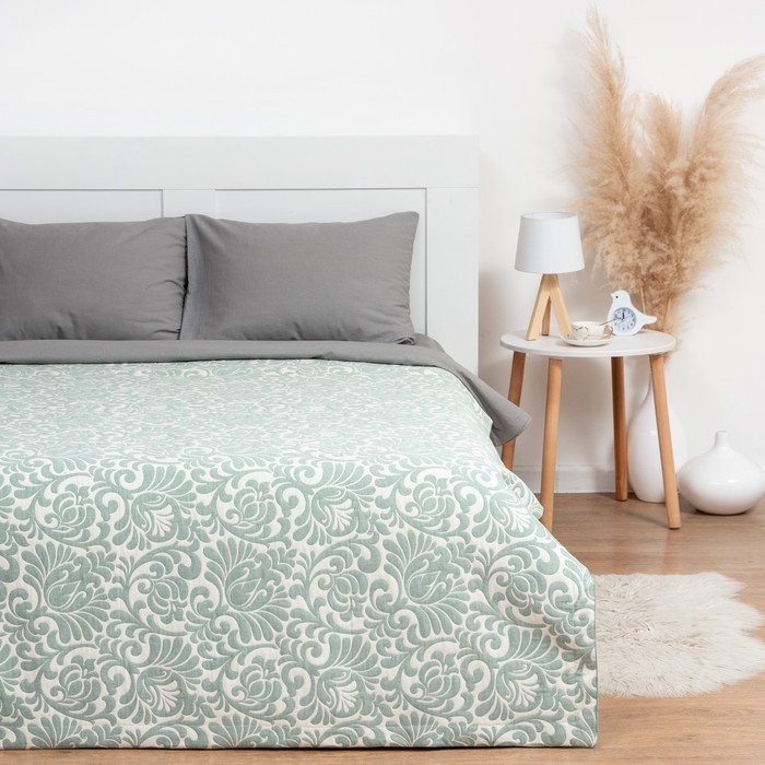 Покрывало хлопковое Этель «Узоры» 200×240 см, цвет зелёный, 100% хлопок, 300гр/м2