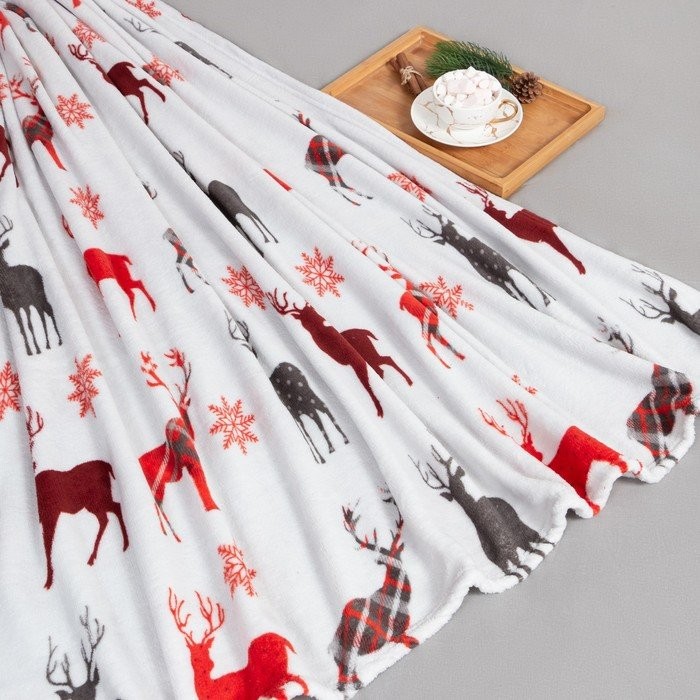 Плед Этель «Олени» 180*200 см,100% п/э, корал-флис 220 гр/м2