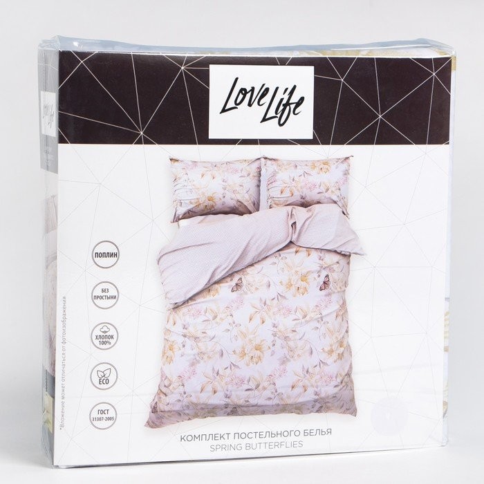 КПБ 2 сп LoveLife Spring butterflies: пододеяльник 180*217см+наволочка 70*70см-2шт, поплин
