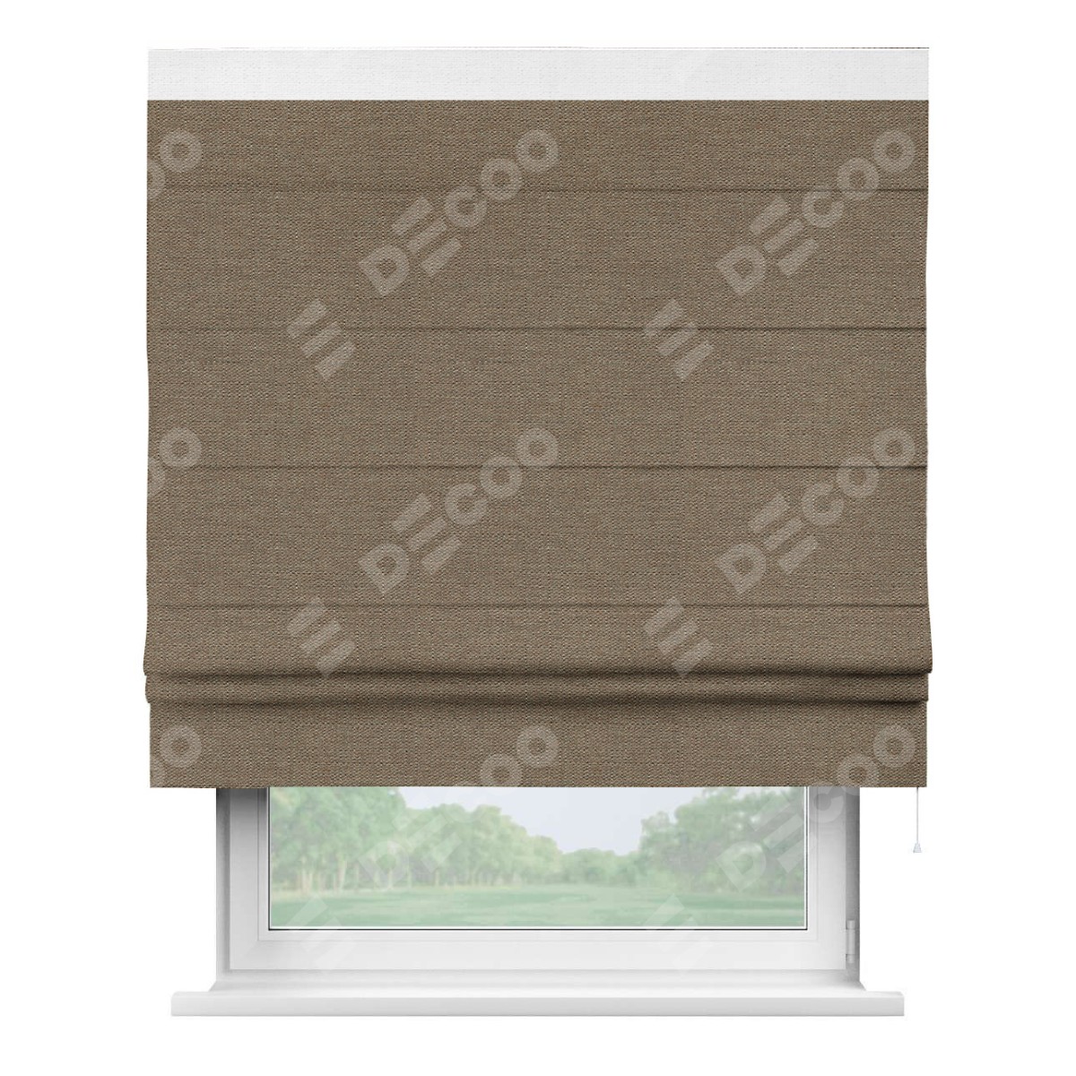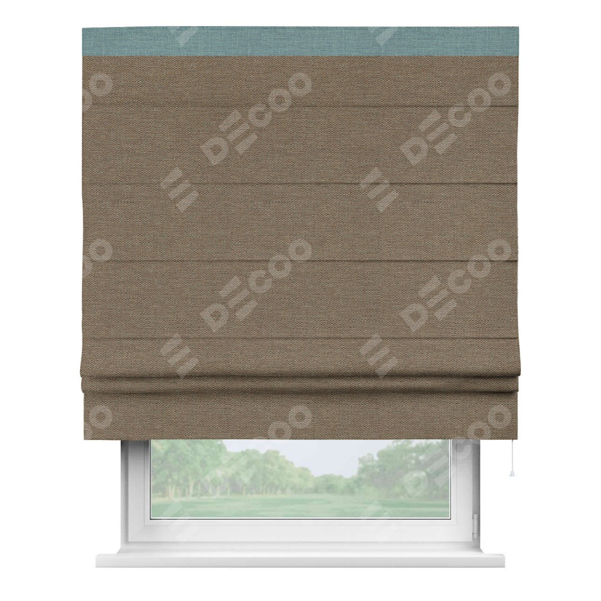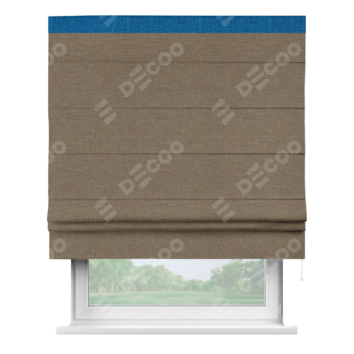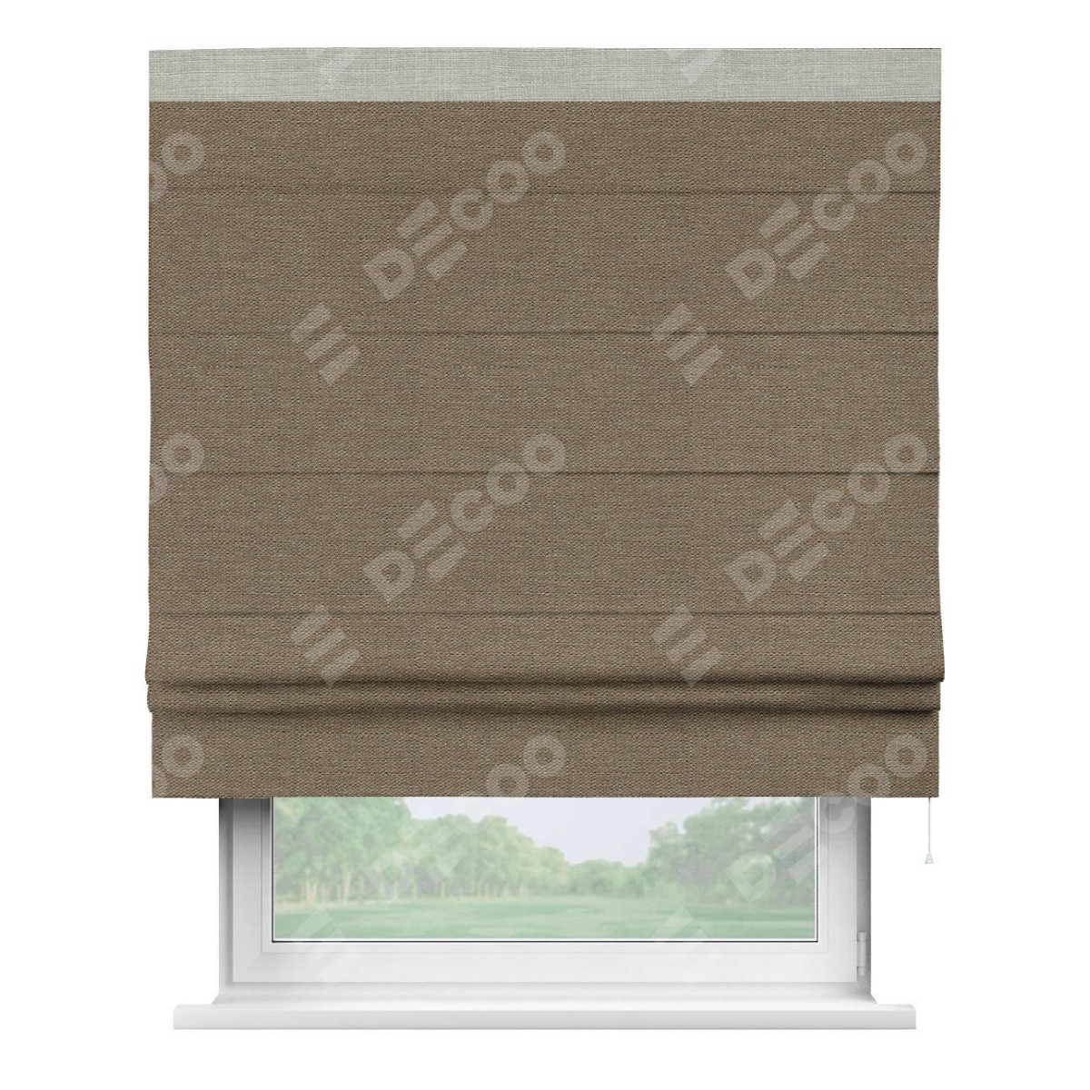 Римская штора производителя «Cortin», используется для проёма, пошита из ткани лён светло-коричневый, артикул 53434. Отделка шторы кантом «Кинг», ткань для канта используется из льна разной расцветки на выбор. Имеет универсальный механизм и подходит для монтажа: на потолок, на стену и в нишу.