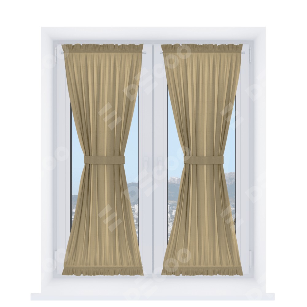 Штора «Песочные часы» производителя «Cortin», используется для створок окон и дверей, пошита из ткани лён димаут песочный, артикул ткани 16239.