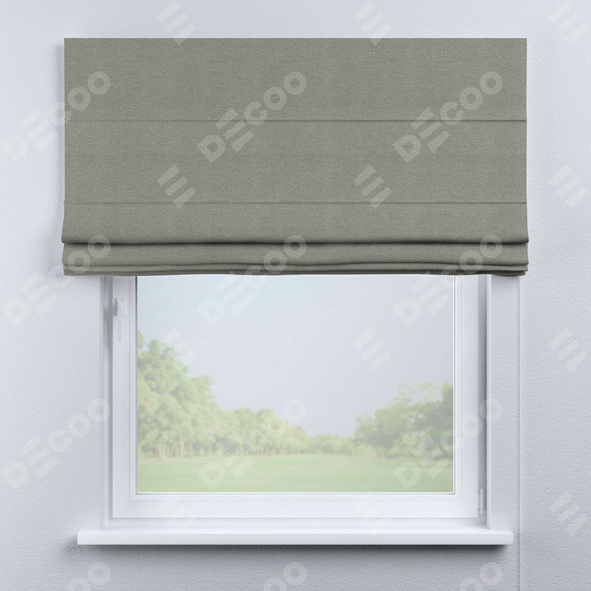 Римская штора производителя «Cortin», используется для проёма, пошита из ткани лён димаут серый, артикул ткани 00001. Имеет универсальный механизм и подходит для монтажа: на потолок, на стену и в нишу.