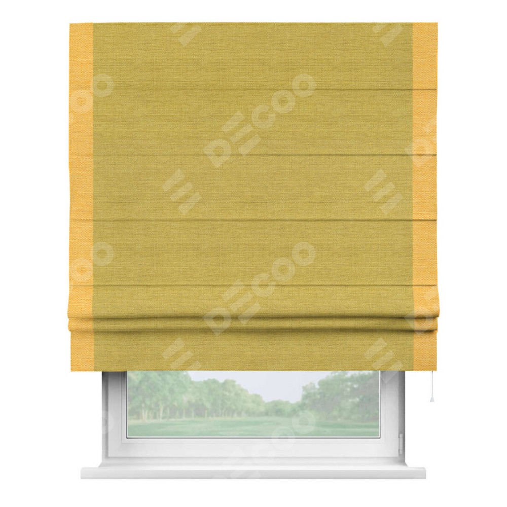 Римская штора «Кортин» с кантом Стрим Дуо, для проема, ткань лён светло-салатовый