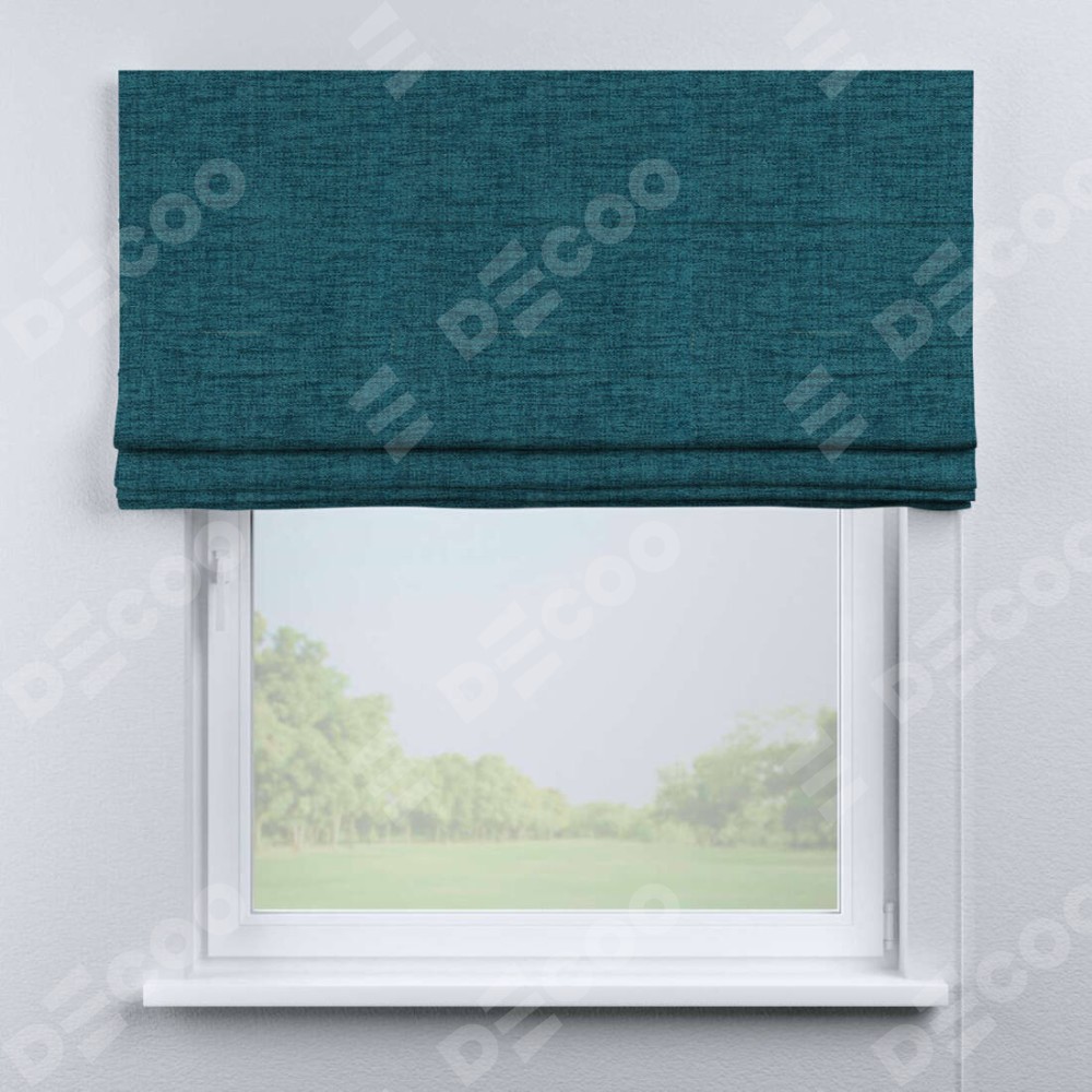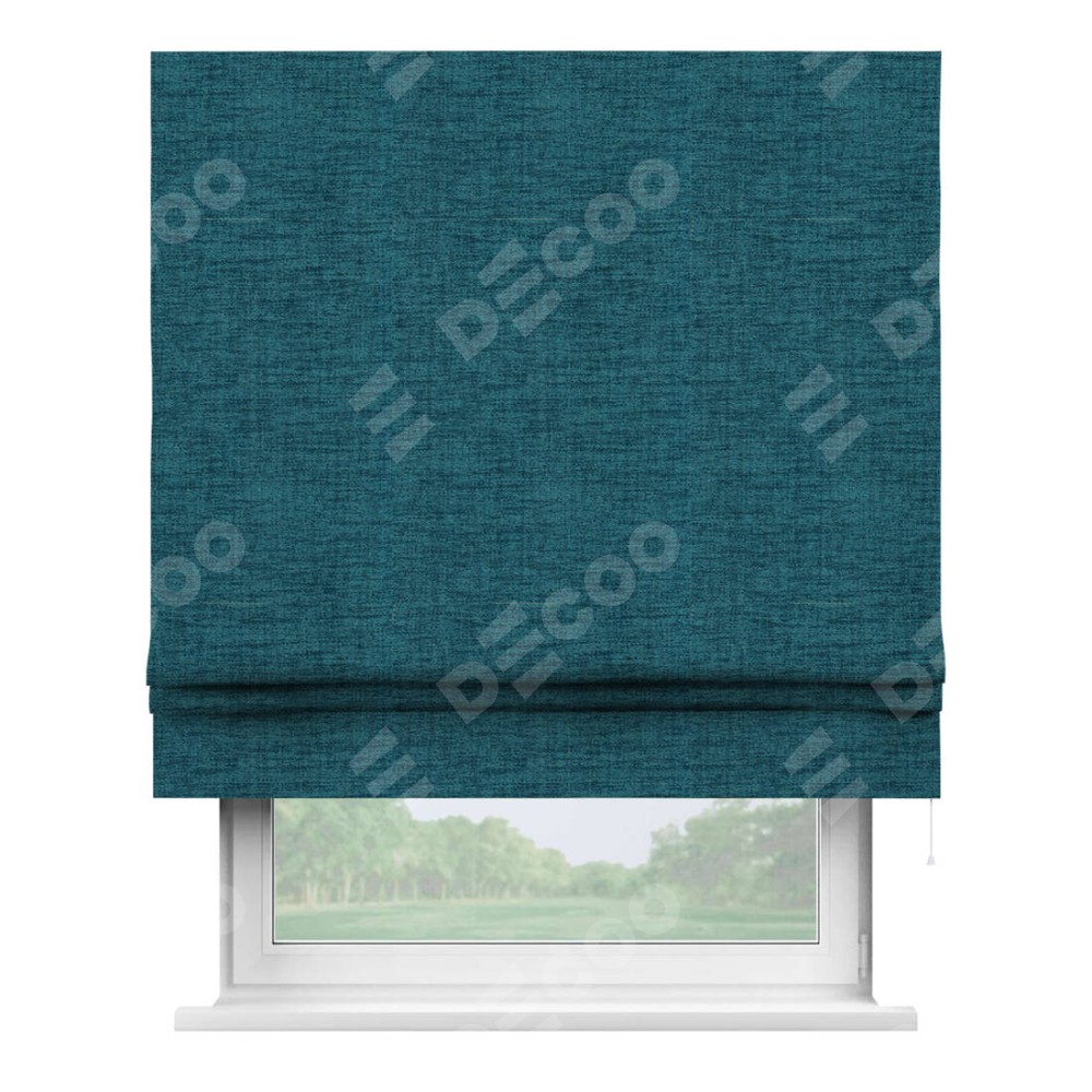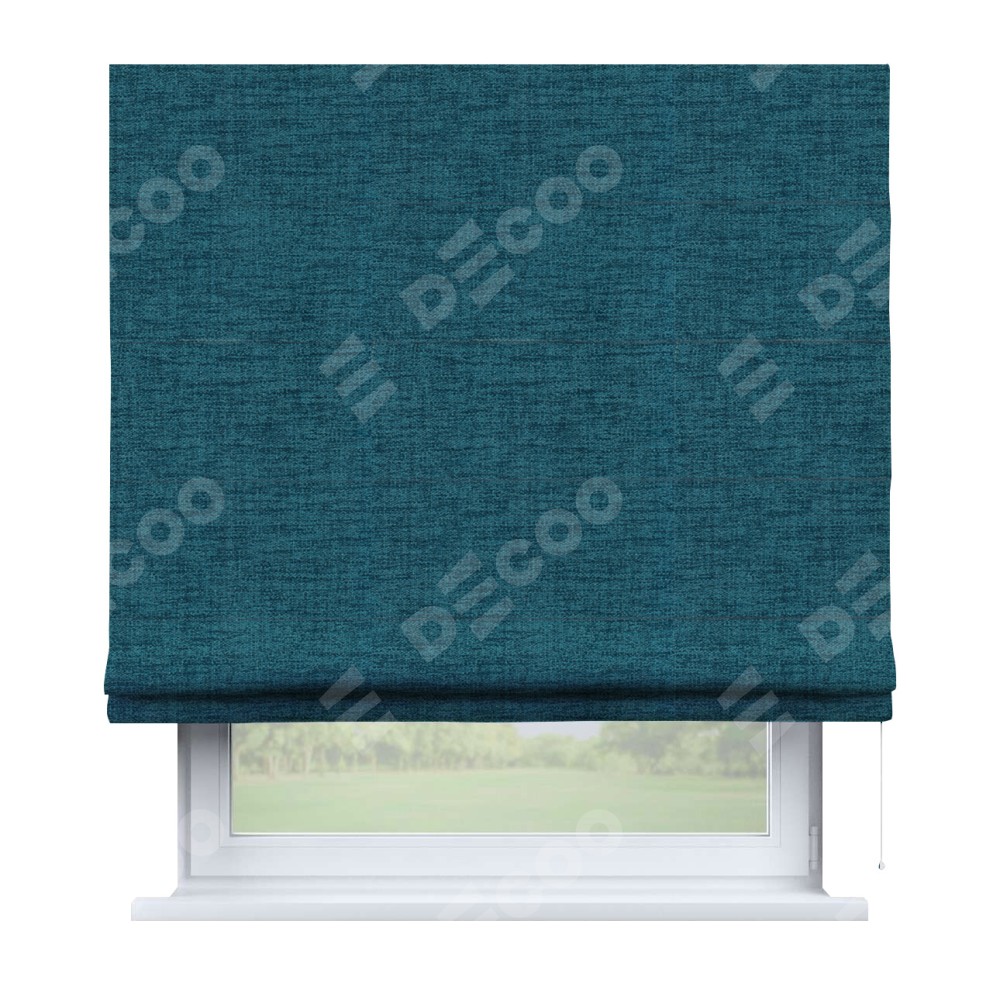 Римская штора производителя «Cortin», используется для проёма, пошита из ткани рогожка димаут синий, артикул ткани 80422. Имеет универсальный механизм и подходит для монтажа: на потолок, на стену и в нишу.
