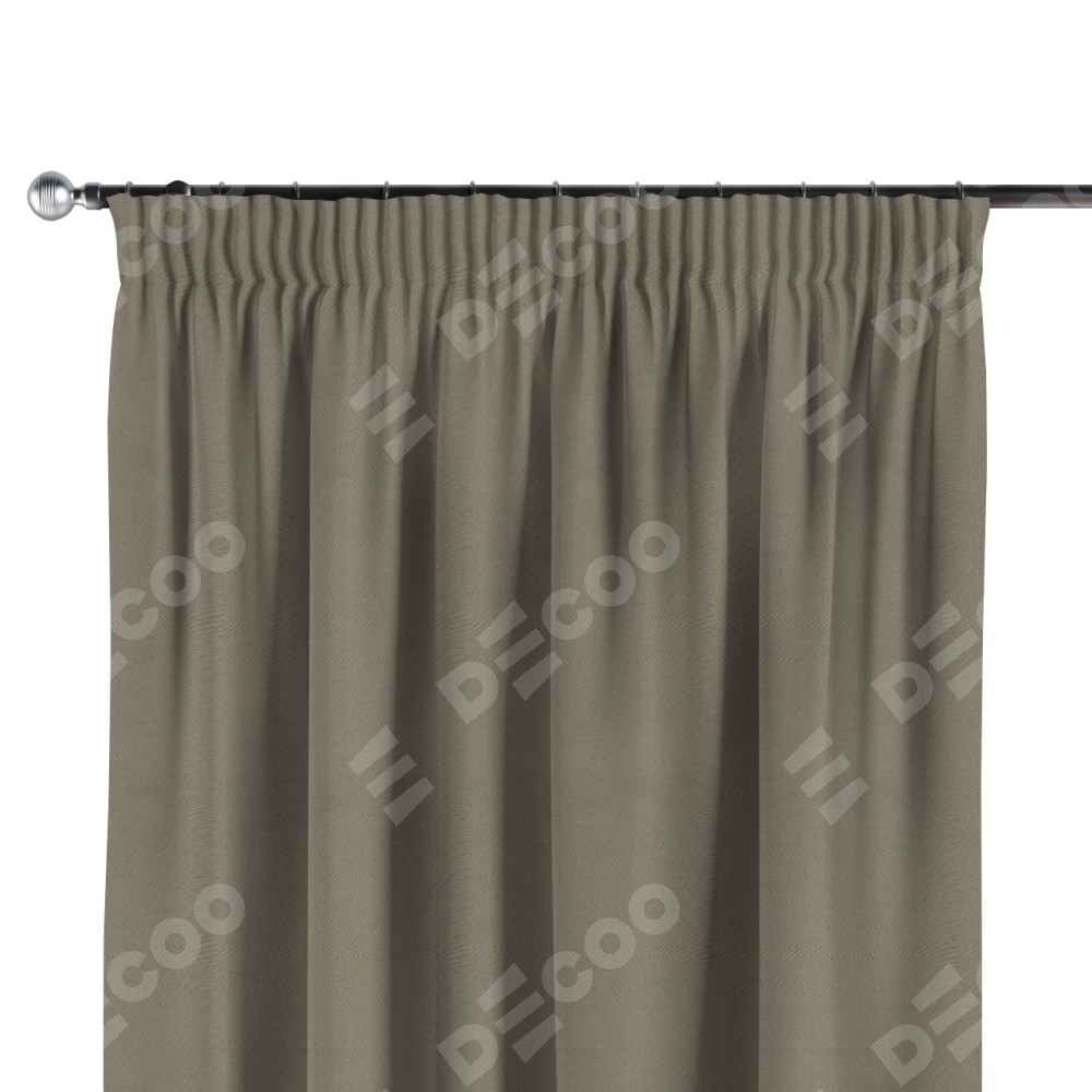 Комплект прямых штор, от производителя «Cortin», пошиты из ткани блэкаут однотонный бежево-серый, артикул ткани 00004. С изнаночной стороны в верхней части штор пристрачивается шторная лента с декоративными складками «Карандаш». Для создания элегантных складок прямые шторы шьются по стандарту с коэффициентом 1:2 (на 100 см. ширины проёма 200 см. ширины ткани).