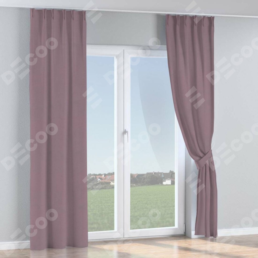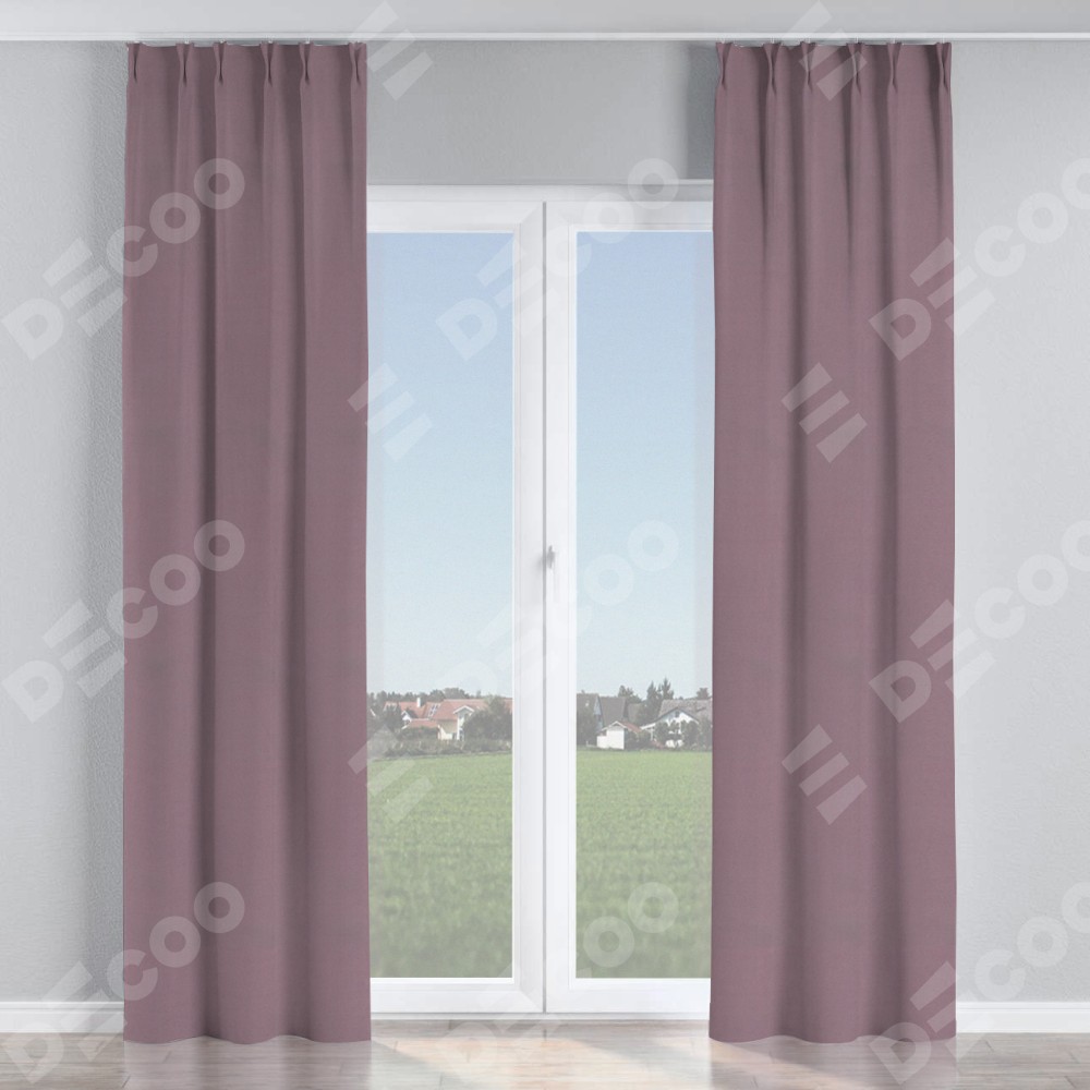 Комплект прямых штор, от производителя «Cortin», пошиты из ткани блэкаут однотонный брусника, артикул ткани 88302. С изнаночной стороны в верхней части штор пристрачивается шторная лента с декоративными складками «Кустик». Для создания элегантных складок прямые шторы шьются по стандарту с коэффициентом 1:2 (на 100 см. ширины проёма 200 см. ширины ткани).