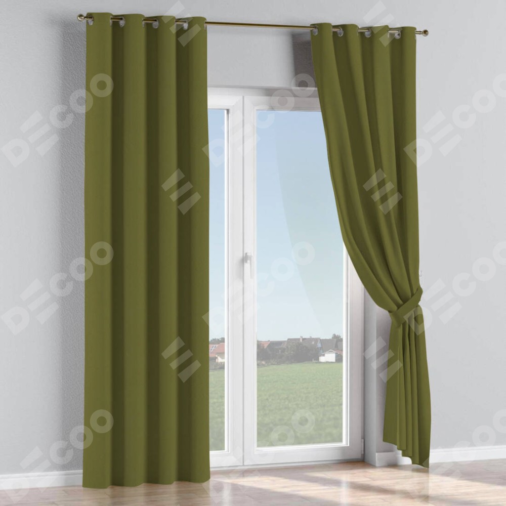 Комплект прямых штор, от производителя «Cortin», пошиты из ткани блэкаут однотонный зелёный, артикул ткани 81859. Данная модель пошита на люверсах, комплектуется на выбор круглым карнизом и подходит для монтажа на стену или потолок. Прямые шторы на люверсах шьются по стандарту с коэффициентом 1/2 (на 100 см. ширины проёма 200 см. ширины ткани), отличительным преимуществом данной модели является простой способ монтажа. Достаточно повесить ее на трубу и штора готова!