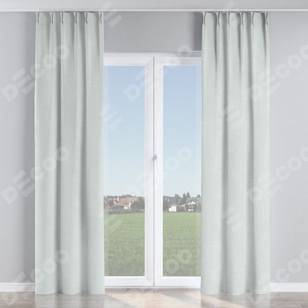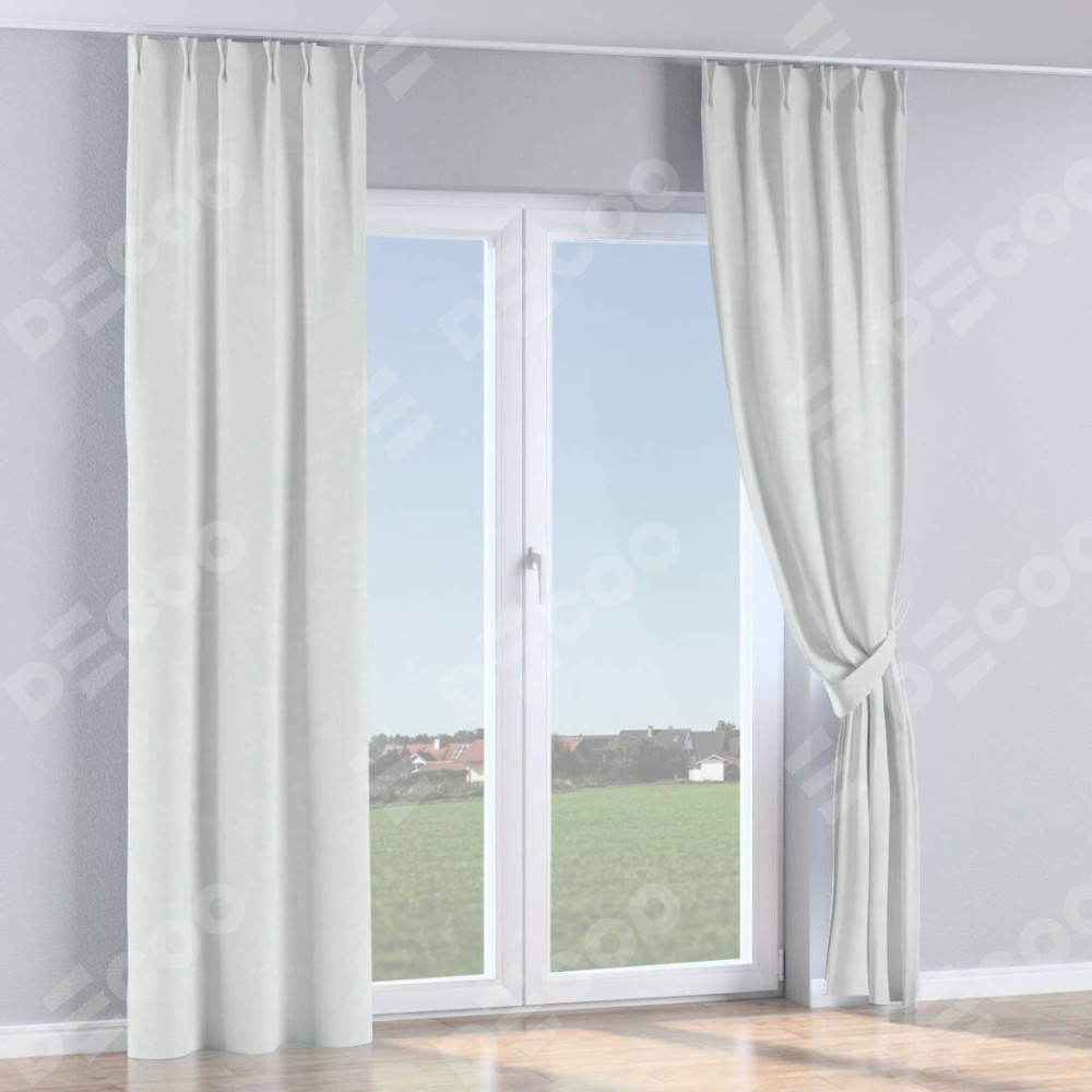 Комплект прямых штор, от производителя «Cortin», пошиты из ткани блэкаут однотонный дымчато-молочный, артикул ткани 88282. С изнаночной стороны в верхней части штор пристрачивается шторная лента с декоративными складками «Кустик». Для создания элегантных складок прямые шторы шьются по стандарту с коэффициентом 1:2 (на 100 см. ширины проёма 200 см. ширины ткани).