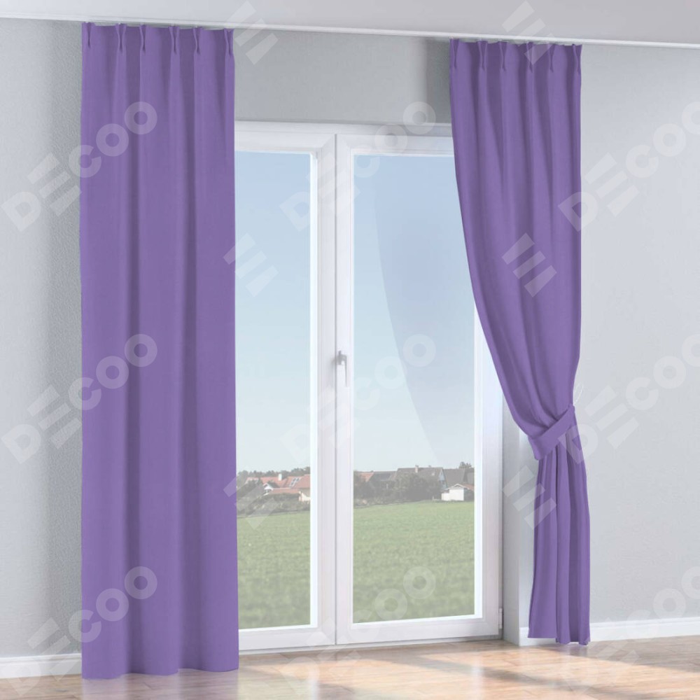 Комплект прямых штор, от производителя «Cortin», пошиты из ткани блэкаут однотонный сиреневый, артикул ткани 88305. С изнаночной стороны в верхней части штор пристрачивается шторная лента с декоративными складками «Кустик». Для создания элегантных складок прямые шторы шьются по стандарту с коэффициентом 1:2 (на 100 см. ширины проёма 200 см. ширины ткани).