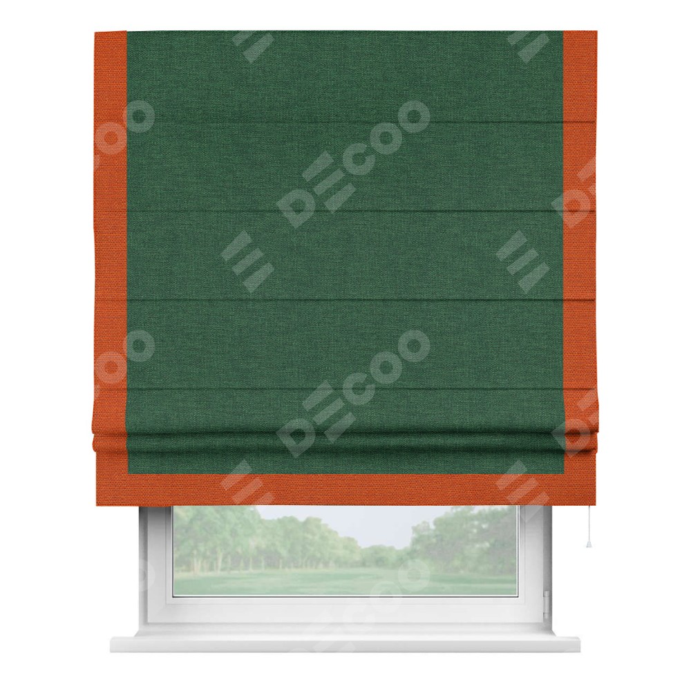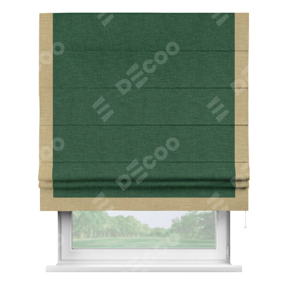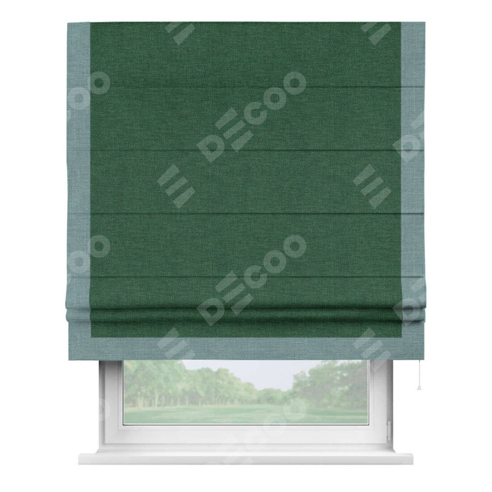 Римская штора «Кортин» с кантом Виктория, для проема, ткань лён серо-зеленый