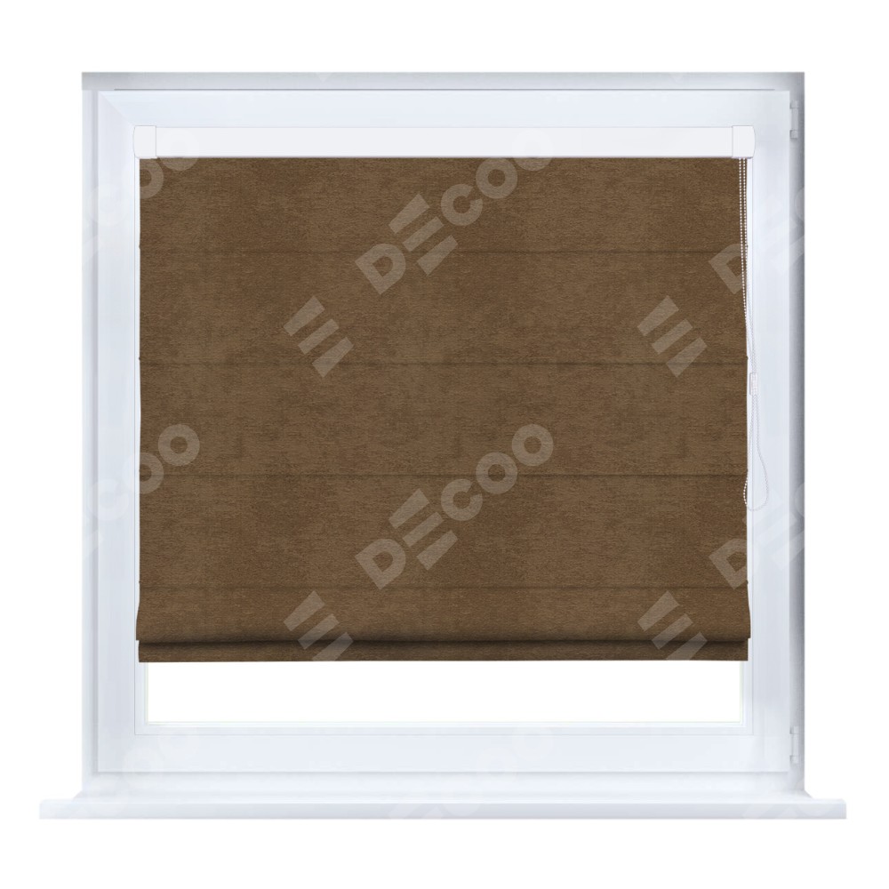 Римская штора кассетного типа, производителя «Cortin», устанавливается только на пластиковые окна и прилегает к стеклопакету, пошита из ткани софт однотонный бронзовый, артикул 33099.