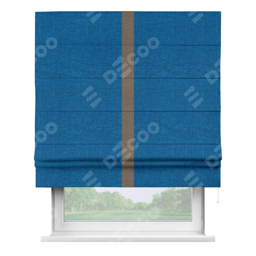 Римская штора «Кортин» с кантом Хайвэй, для проема, ткань лён синий