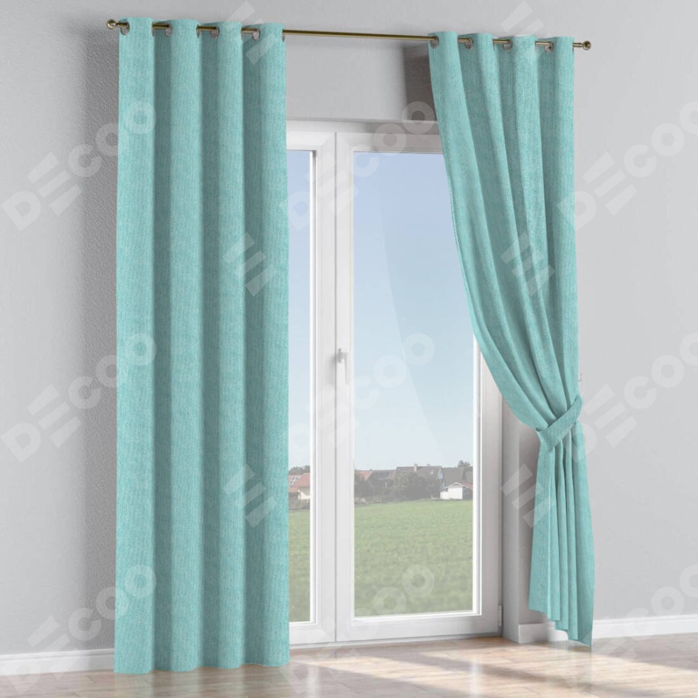Комплект прямых штор, от производителя «Cortin», пошиты из ткани лён димаут бирюзовый, артикул ткани 23. Данная модель пошита на люверсах, комплектуется на выбор круглым карнизом и подходит для монтажа на стену или потолок. Прямые шторы на люверсах шьются по стандарту с коэффициентом 1/2 (на 100 см. ширины проёма 200 см. ширины ткани), отличительным преимуществом данной модели является простой способ монтажа. Достаточно повесить ее на трубу и штора готова!