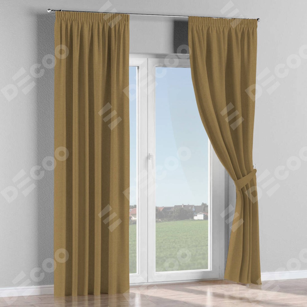 Комплект прямых штор, от производителя «Cortin», пошиты из ткани лён димаут оливковый, артикул ткани 16243. С изнаночной стороны в верхней части штор пристрачивается шторная лента с декоративными складками «Карандаш». Для создания элегантных складок прямые шторы шьются по стандарту с коэффициентом 1:2 (на 100 см. ширины проёма 200 см. ширины ткани).