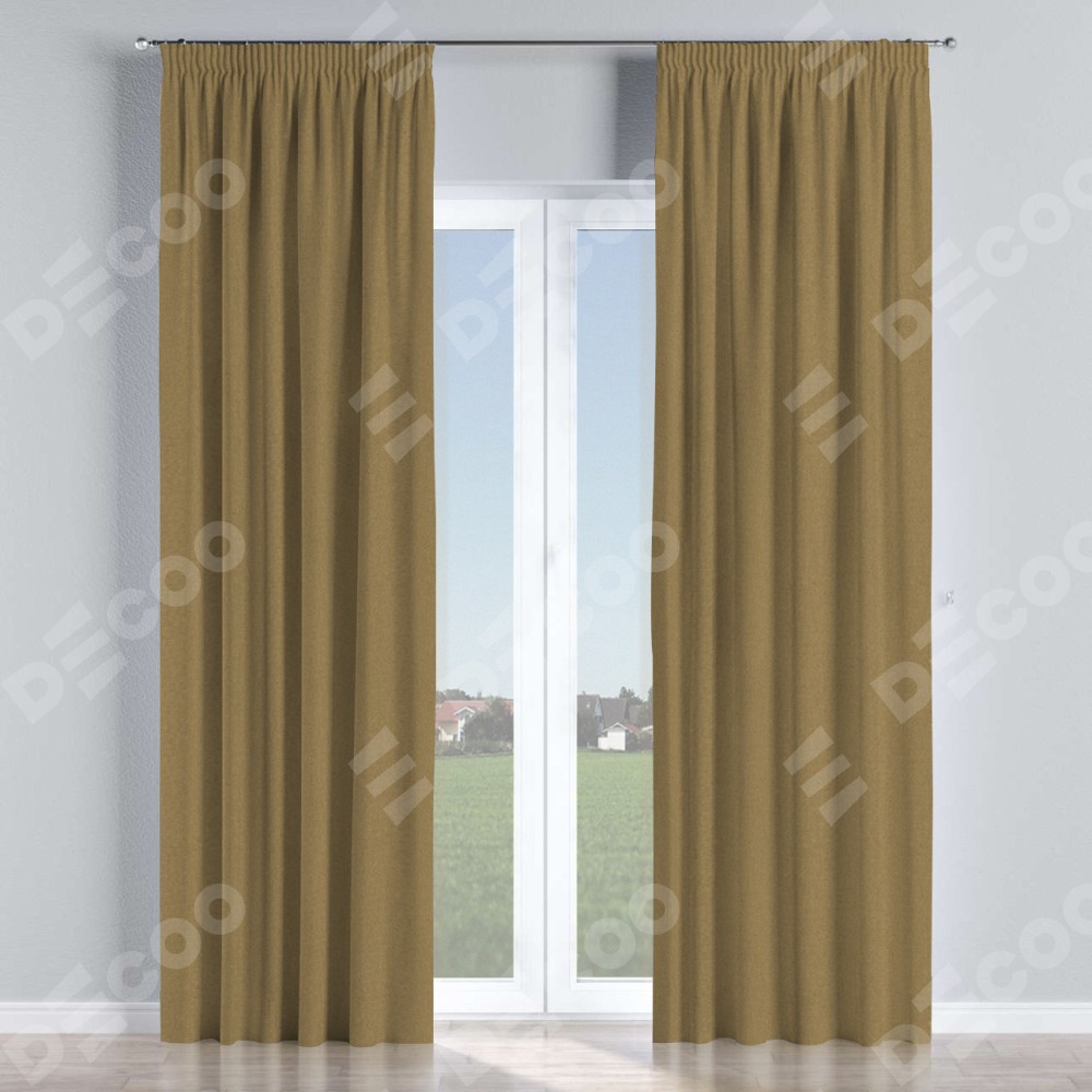 Комплект штор на тесьме «Карандаш», лён димаут оливковый