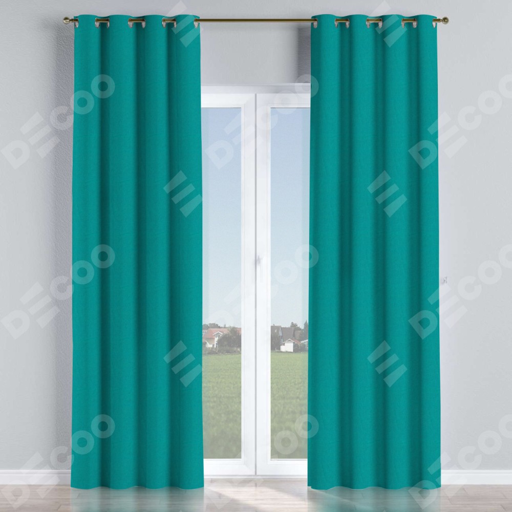 Комплект прямых штор, от производителя «Cortin», пошиты из ткани лён димаут тёмно-бирюзовый, артикул ткани 318. Данная модель пошита на люверсах, комплектуется на выбор круглым карнизом и подходит для монтажа на стену или потолок. Прямые шторы на люверсах шьются по стандарту с коэффициентом 1/2 (на 100 см. ширины проёма 200 см. ширины ткани), отличительным преимуществом данной модели является простой способ монтажа. Достаточно повесить ее на трубу и штора готова!