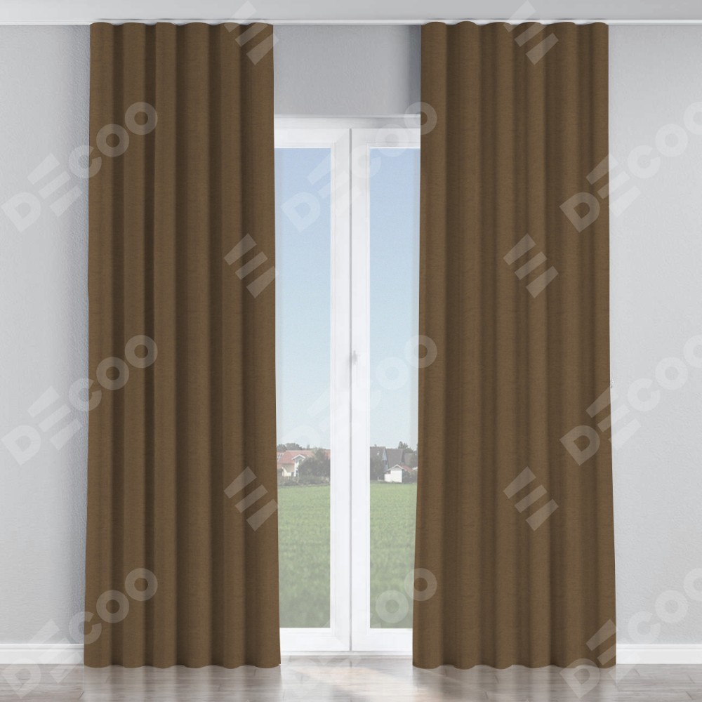 Комплект прямых штор, от производителя «Cortin», пошиты из ткани лён димаут тёмно-коричневый, артикул ткани 83030. С изнаночной стороны в верхней части штор пристрачивается шторная лента с декоративными складками «Волна». Для создания элегантных складок прямые шторы шьются по стандарту с коэффициентом 1:2 (на 100 см. ширины проёма 200 см. ширины ткани).