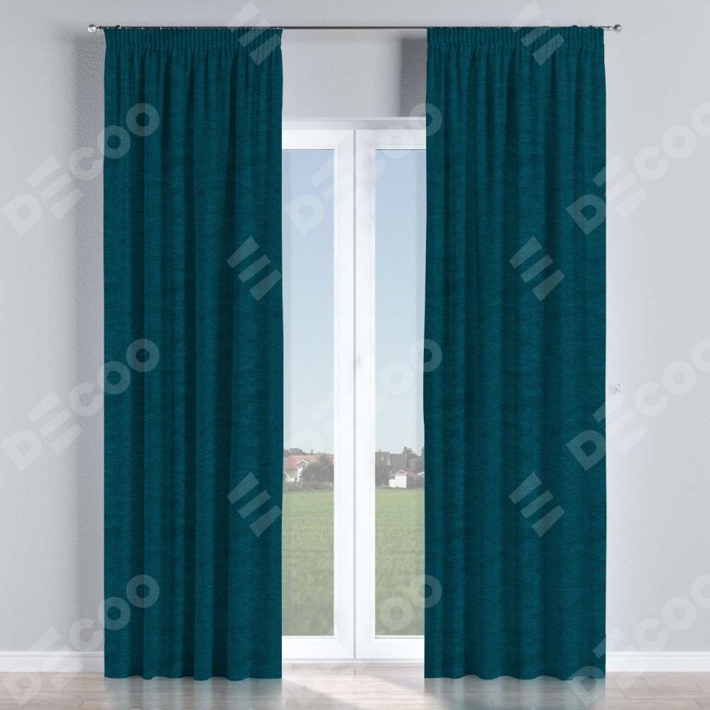 Комплект прямых штор, от производителя «Cortin», пошиты из ткани твид блэкаут глубокий синий, артикул ткани 21590. С изнаночной стороны в верхней части штор пристрачивается шторная лента с декоративными складками «Карандаш». Для создания элегантных складок прямые шторы шьются по стандарту с коэффициентом 1:2 (на 100 см. ширины проёма 200 см. ширины ткани).