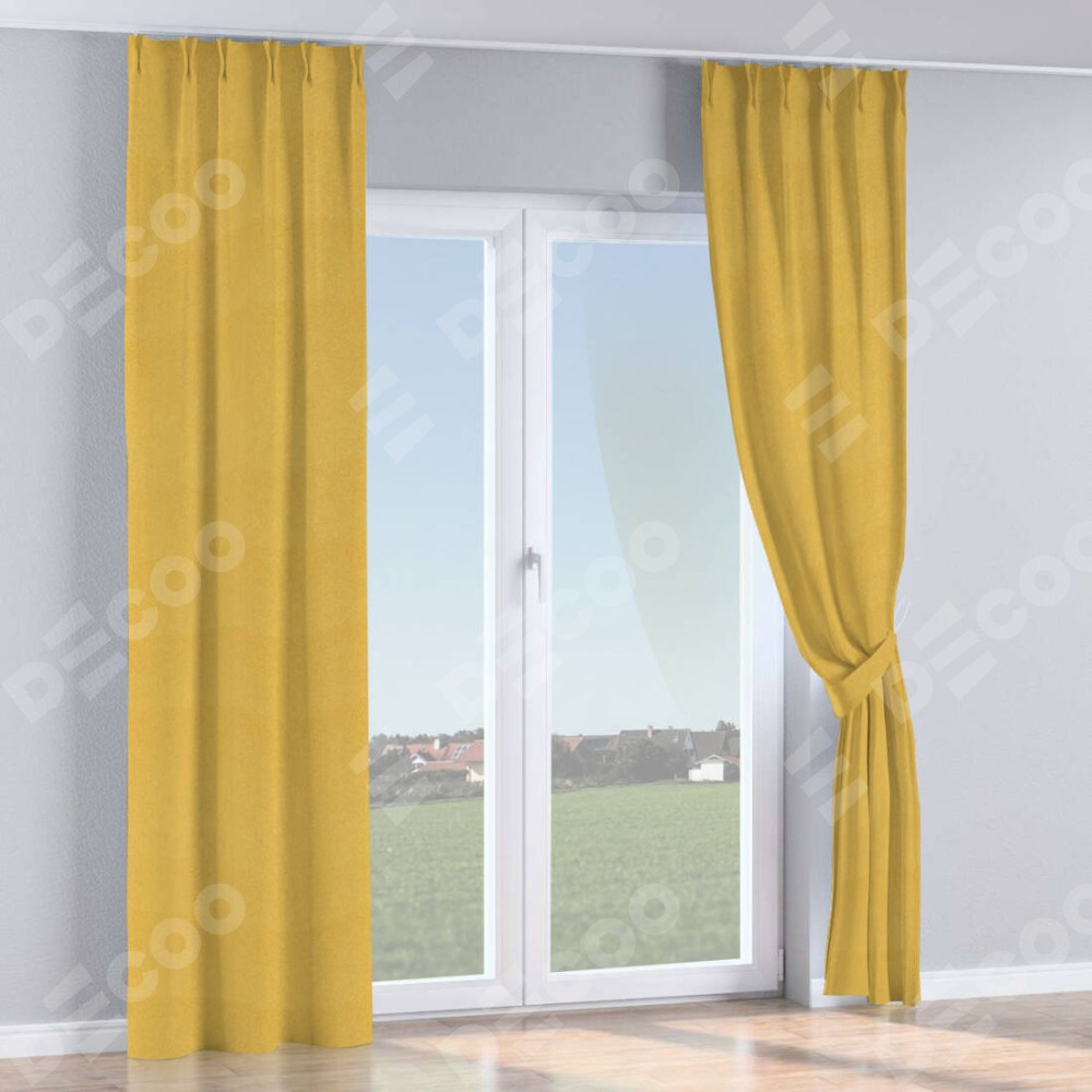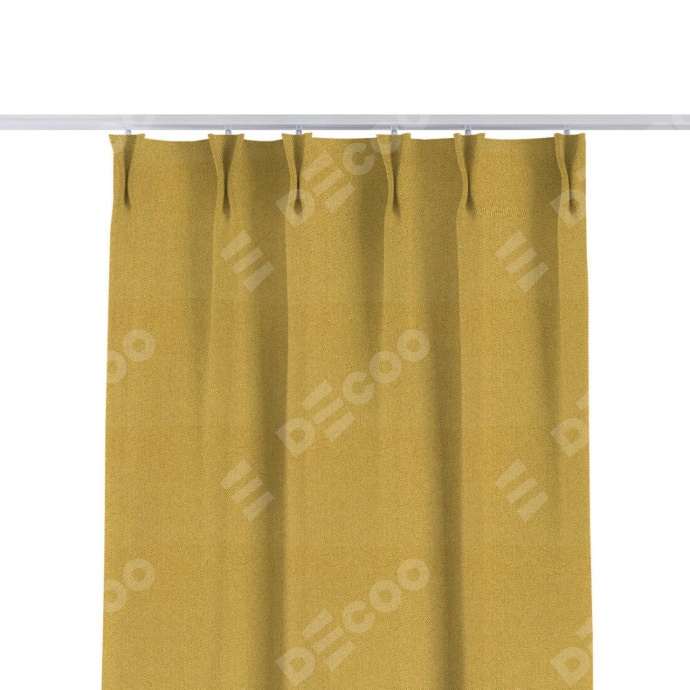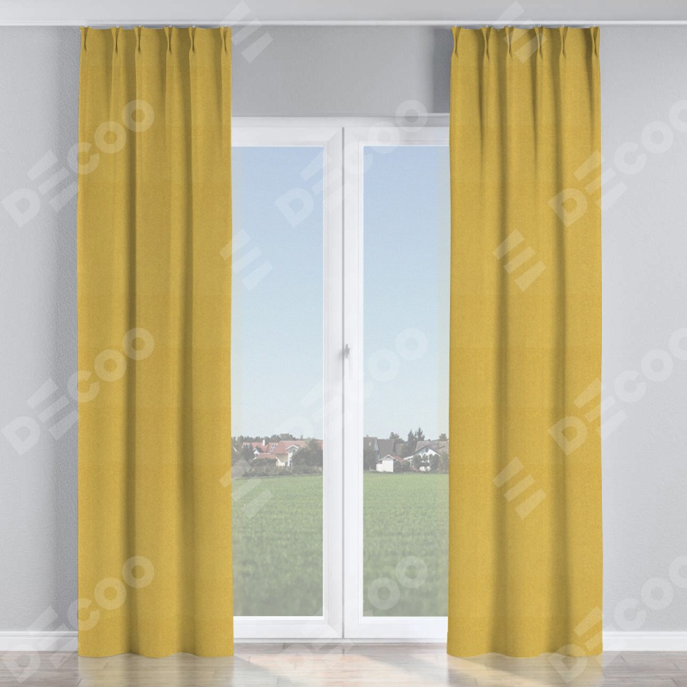 Комплект прямых штор, от производителя «Cortin», пошиты из ткани твид блэкаут пыльная горчица, артикул ткани 21588. С изнаночной стороны в верхней части штор пристрачивается шторная лента с декоративными складками «Кустик». Для создания элегантных складок прямые шторы шьются по стандарту с коэффициентом 1:2 (на 100 см. ширины проёма 200 см. ширины ткани).