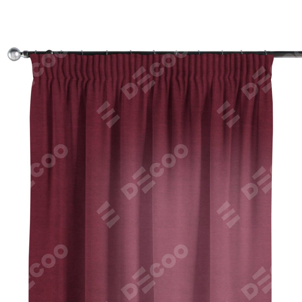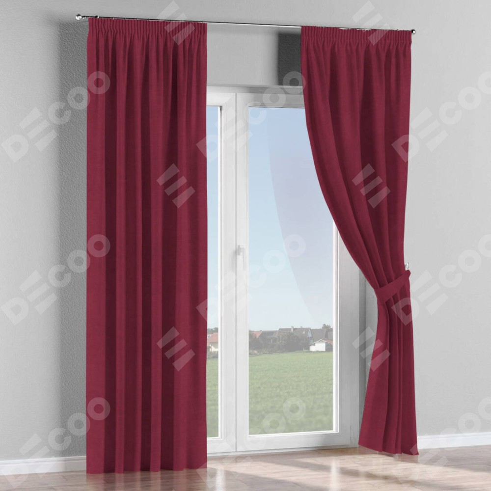 Комплект прямых штор, от производителя «Cortin», пошиты из ткани вельвет бордовый, артикул ткани 85553. С изнаночной стороны в верхней части штор пристрачивается шторная лента с декоративными складками «Карандаш». Для создания элегантных складок прямые шторы шьются по стандарту с коэффициентом 1:2 (на 100 см. ширины проёма 200 см. ширины ткани).