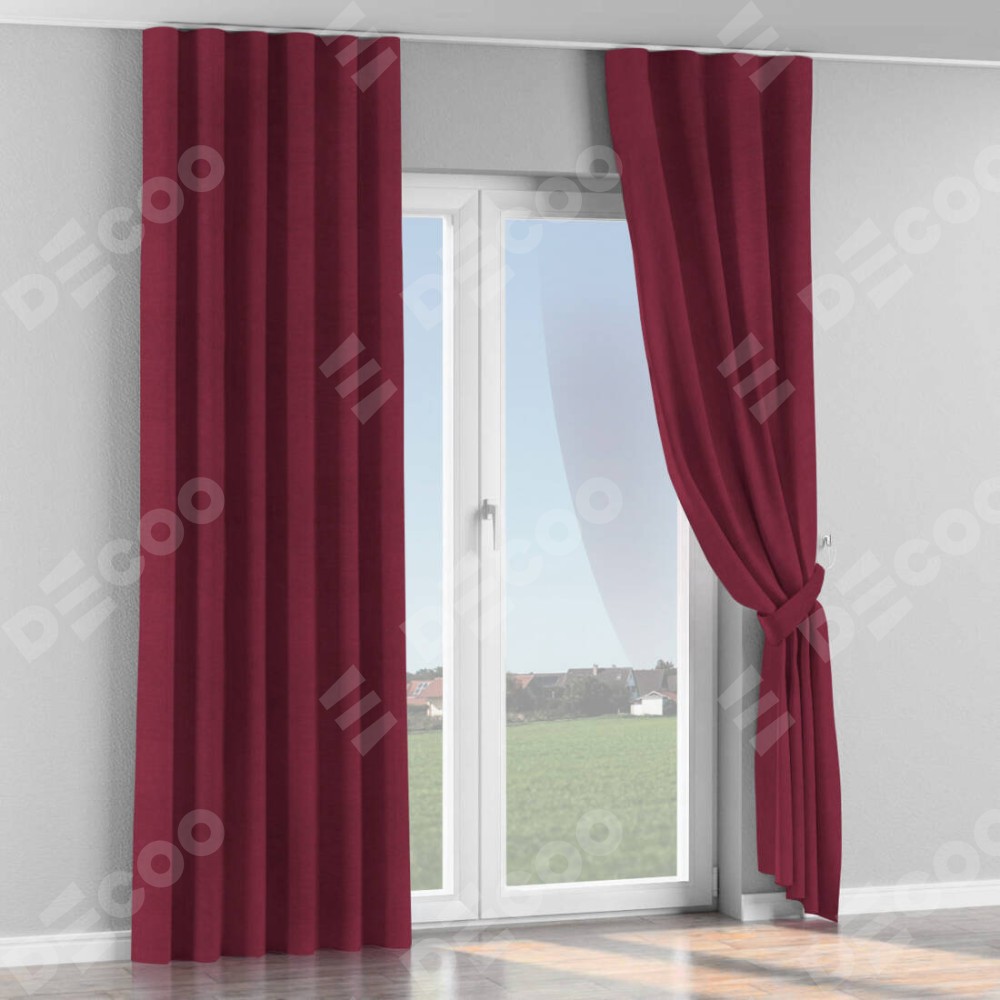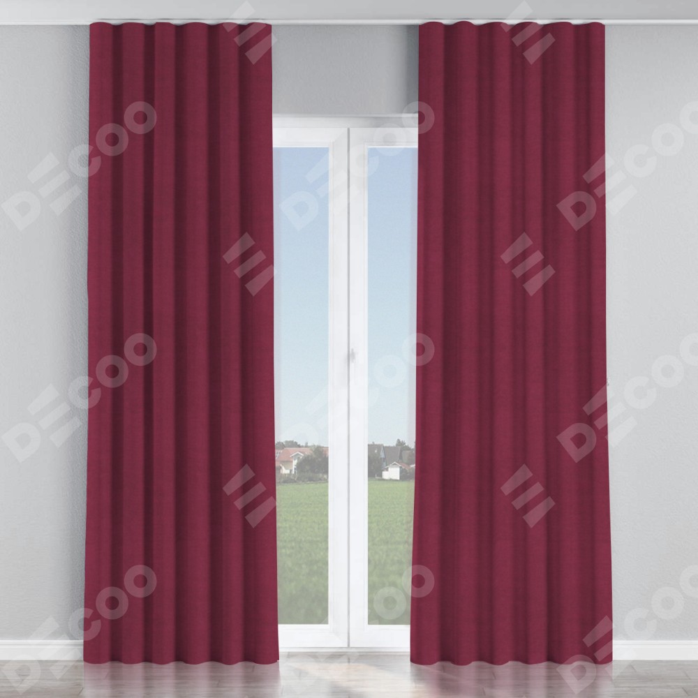 Комплект прямых штор, от производителя «Cortin», пошиты из ткани вельвет бордовый, артикул ткани 85553. С изнаночной стороны в верхней части штор пристрачивается шторная лента с декоративными складками «Волна». Для создания элегантных складок прямые шторы шьются по стандарту с коэффициентом 1:2 (на 100 см. ширины проёма 200 см. ширины ткани).