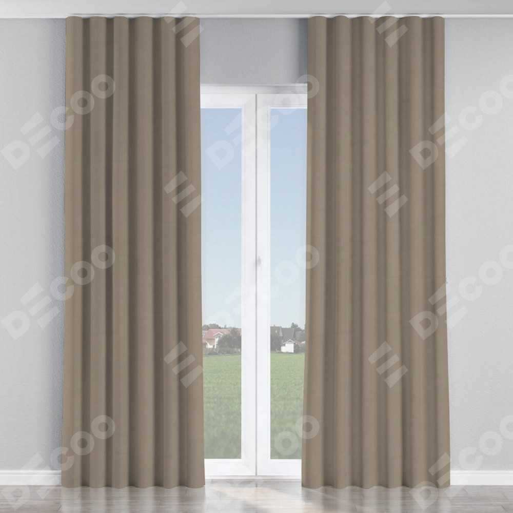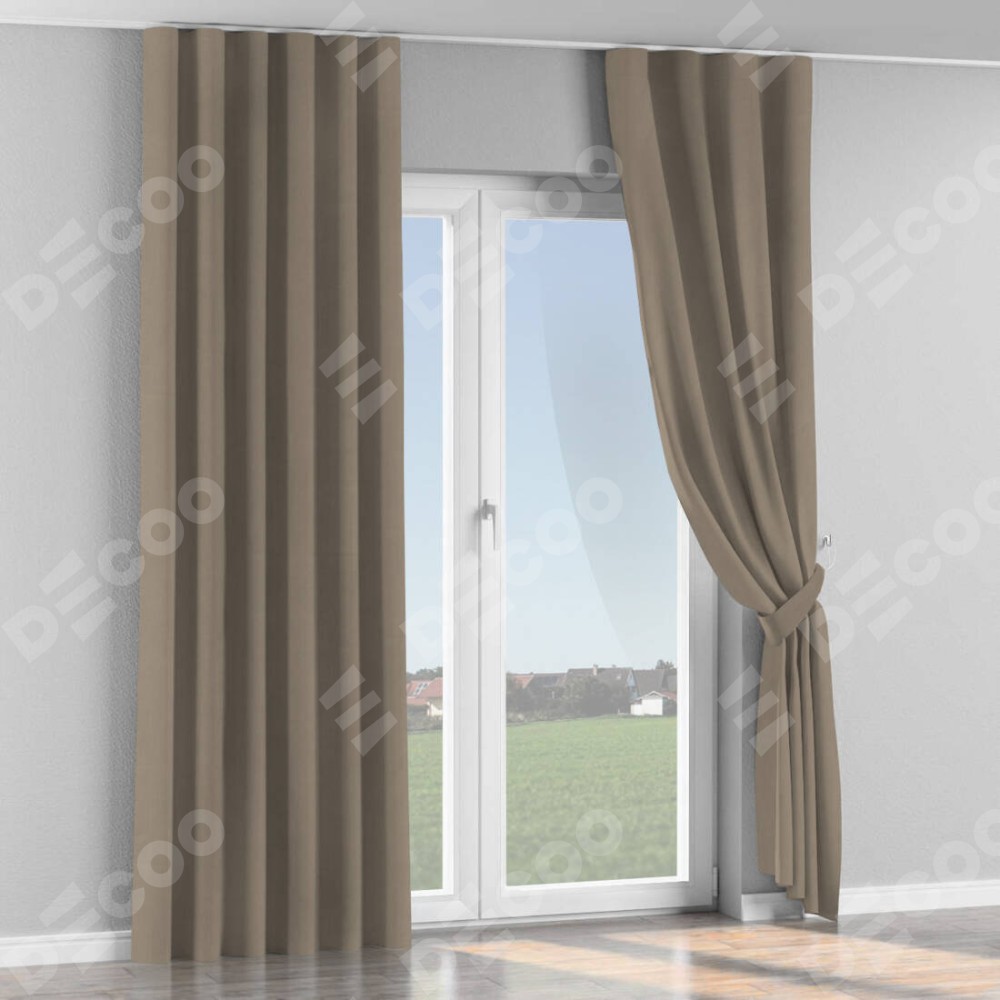 Комплект прямых штор, от производителя «Cortin», пошиты из ткани вельвет кофейный, артикул ткани 30980. С изнаночной стороны в верхней части штор пристрачивается шторная лента с декоративными складками «Волна». Для создания элегантных складок прямые шторы шьются по стандарту с коэффициентом 1:2 (на 100 см. ширины проёма 200 см. ширины ткани).