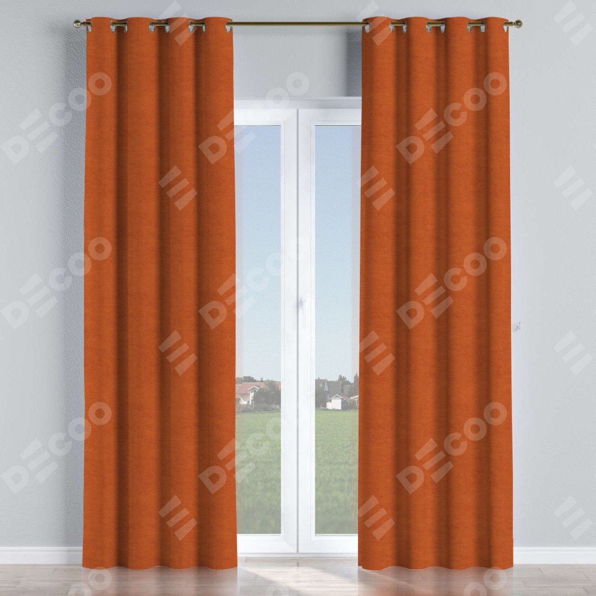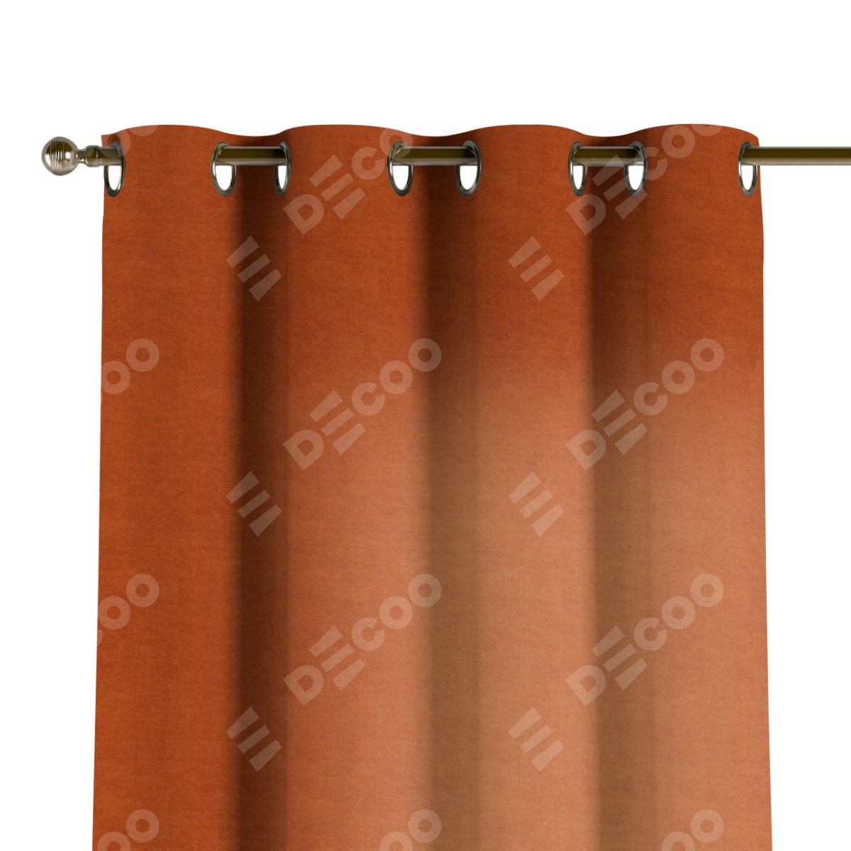 Комплект прямых штор, от производителя «Cortin», пошиты из ткани вельвет терракотовый, артикул ткани 85548. Данная модель пошита на люверсах, комплектуется на выбор круглым карнизом и подходит для монтажа на стену или потолок. Прямые шторы на люверсах шьются по стандарту с коэффициентом 1/2 (на 100 см. ширины проёма 200 см. ширины ткани), отличительным преимуществом данной модели является простой способ монтажа. Достаточно повесить ее на трубу и штора готова!