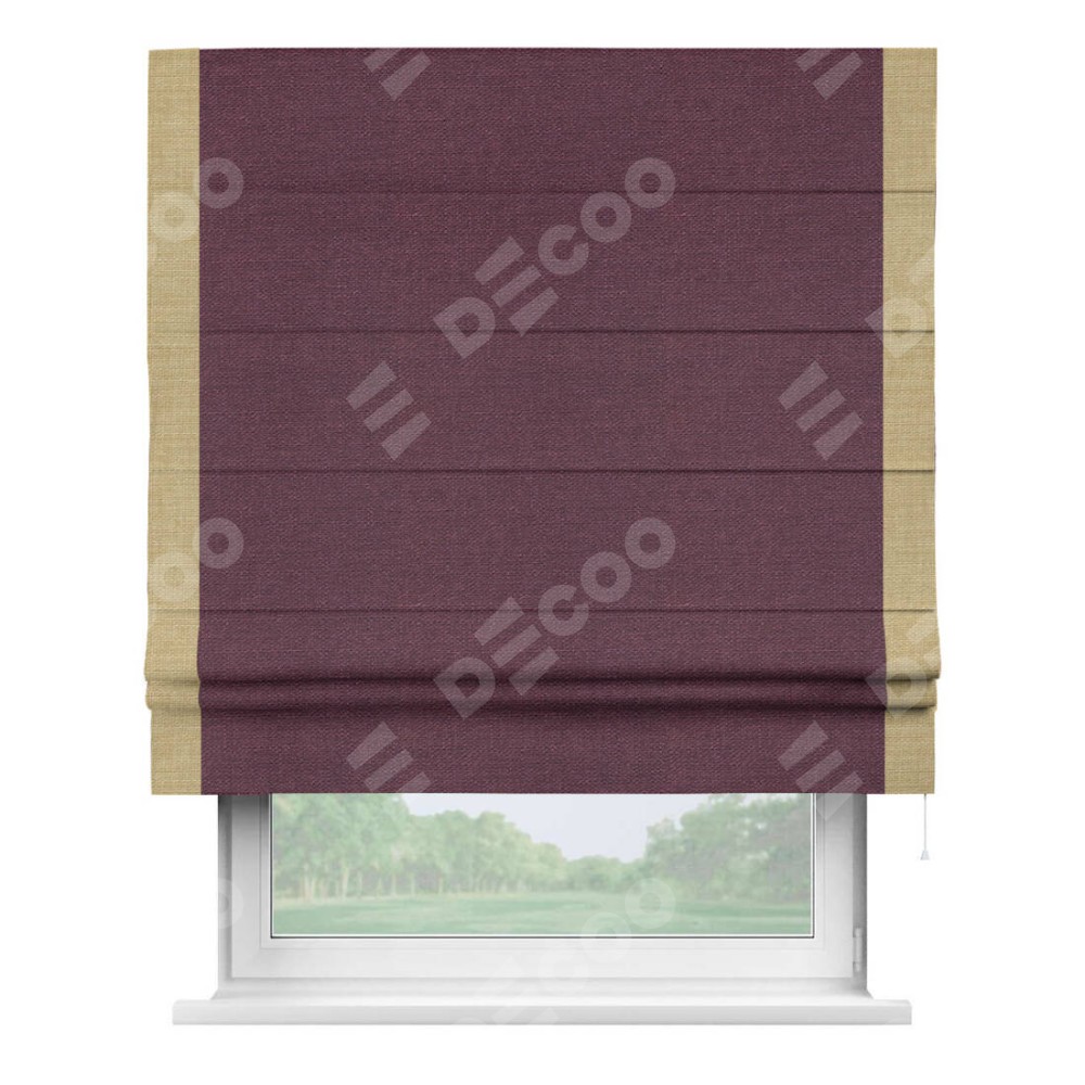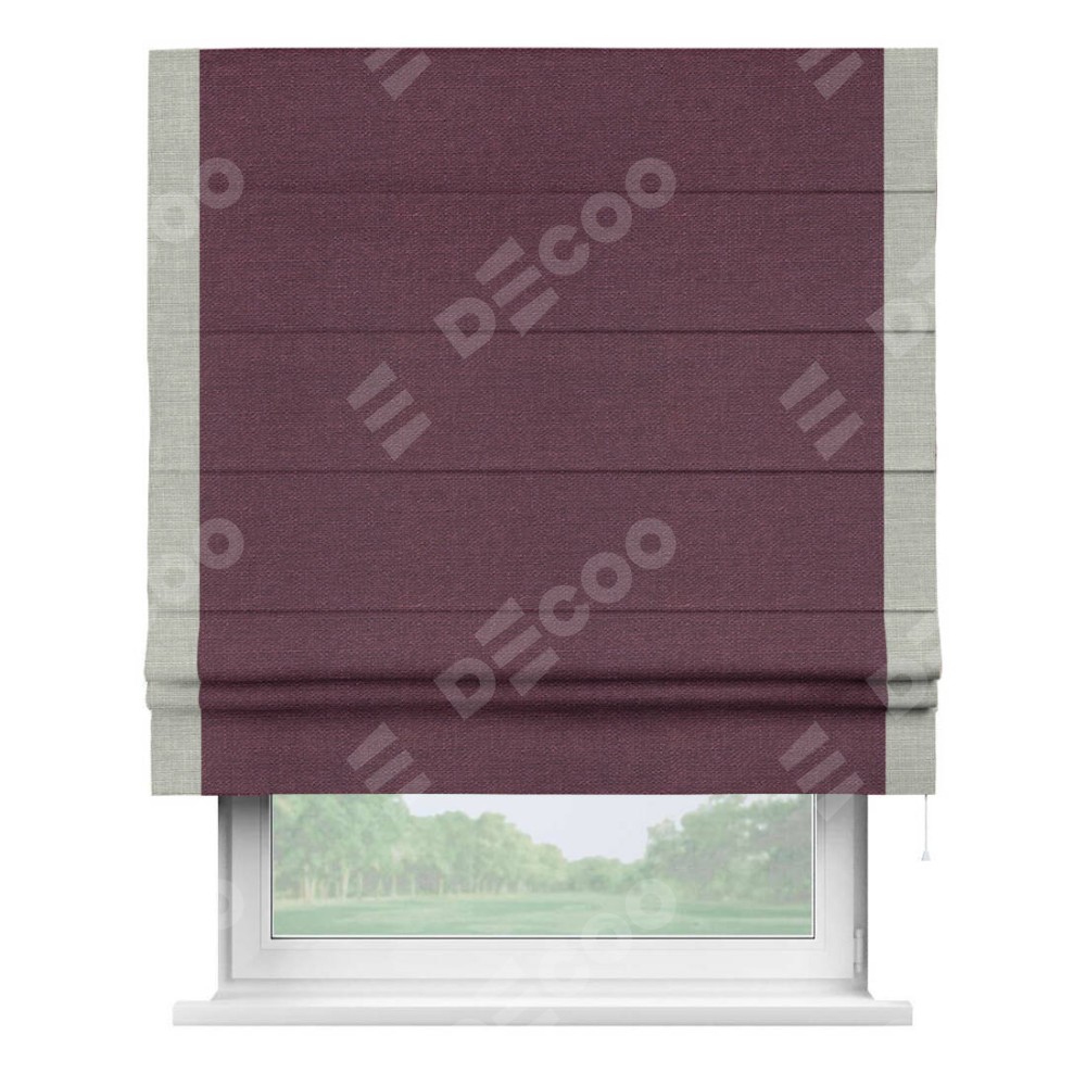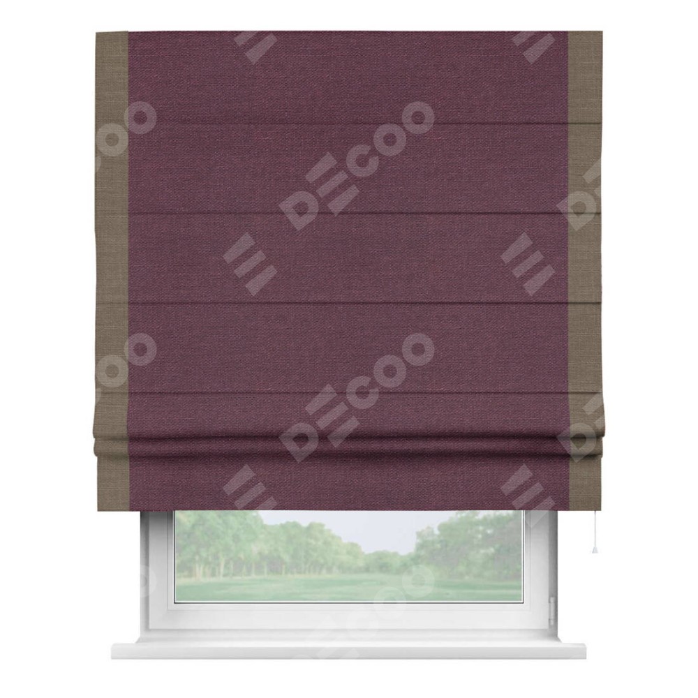 Римская штора «Кортин» с кантом Стрим Дуо, для проема, ткань лён фиолетовый