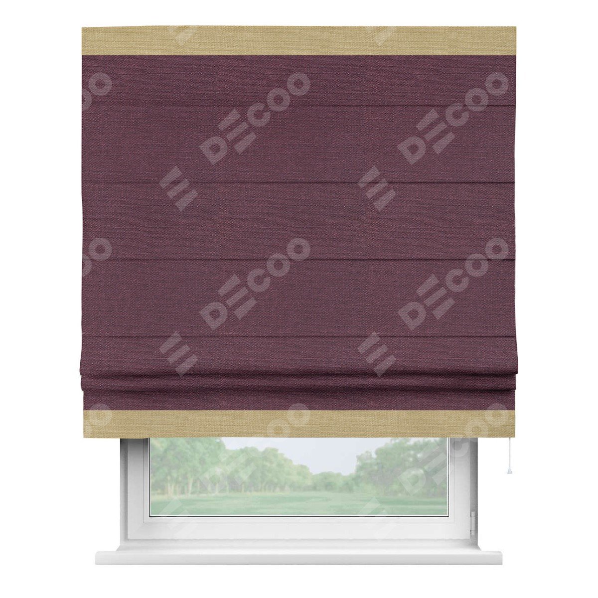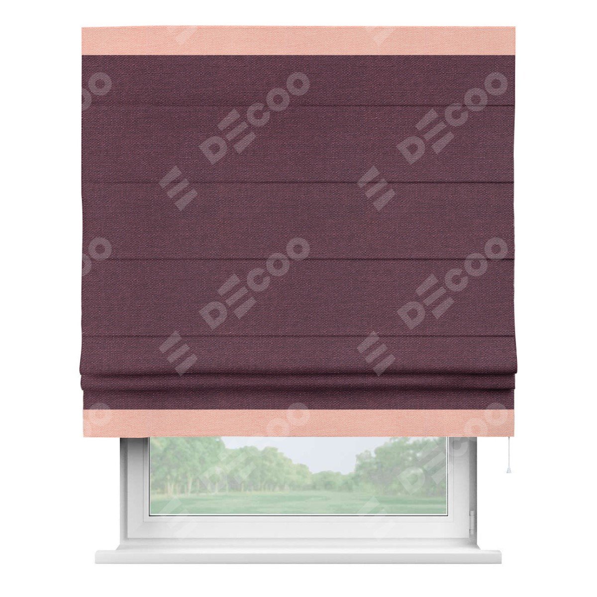 Римская штора «Кортин» с кантом Горизонт, для проема, ткань лён фиолетовый