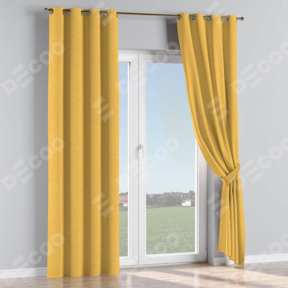 Комплект прямых штор, от производителя «Cortin», пошиты из ткани лён желтый, артикул ткани 63738. Данная модель пошита на люверсах, комплектуется на выбор круглым карнизом и подходит для монтажа на стену или потолок. Прямые шторы на люверсах шьются по стандарту с коэффициентом 1/2 (на 100 см. ширины проёма 200 см. ширины ткани), отличительным преимуществом данной модели является простой способ монтажа. Достаточно повесить ее на трубу и штора готова!
