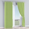 Комплект прямых штор, от производителя «Cortin», пошиты из ткани лён зелёный, артикул ткани 85906. Данная модель пошита на петлях, комплектуется на выбор круглым карнизом и подходит для монтажа на стену или потолок. Прямые шторы на петлях шьются по стандарту с коэффициентом 1/2 (на 100 см. ширины проёма 200 см. ширины ткани), отличительным преимуществом данной модели является простой способ монтажа. Достаточно повесить ее на трубу и штора готова!