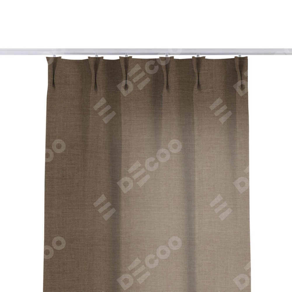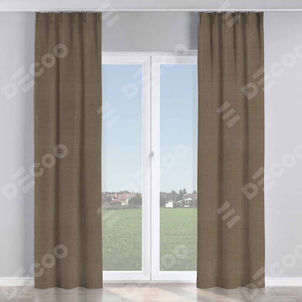 Комплект прямых штор, от производителя «Cortin», пошиты из ткани лён мокко, артикул ткани 7444. С изнаночной стороны в верхней части штор пристрачивается шторная лента с декоративными складками «Кустик». Для создания элегантных складок прямые шторы шьются по стандарту с коэффициентом 1:2 (на 100 см. ширины проёма 200 см. ширины ткани).