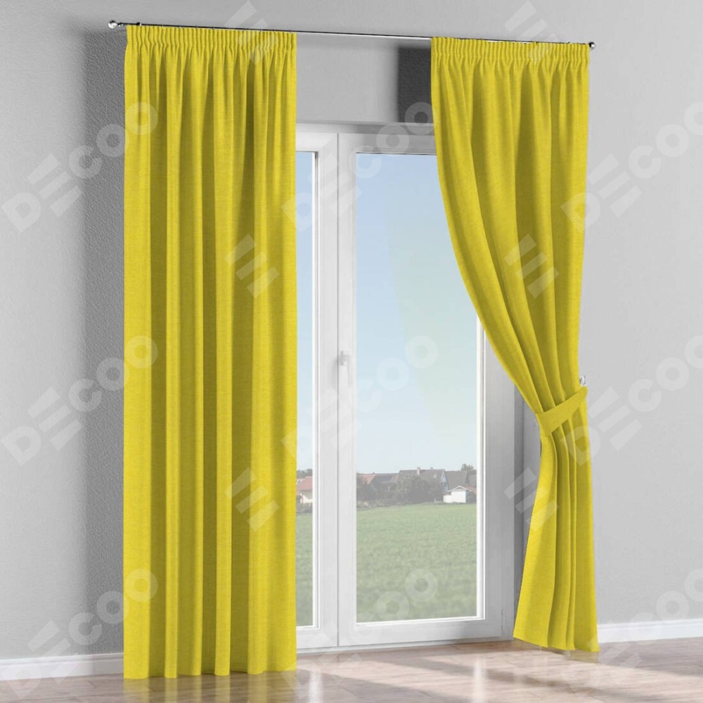 Комплект прямых штор, от производителя «Cortin», пошиты из ткани лён салатовый, артикул ткани 53437. С изнаночной стороны в верхней части штор пристрачивается шторная лента с декоративными складками «Карандаш». Для создания элегантных складок прямые шторы шьются по стандарту с коэффициентом 1:2 (на 100 см. ширины проёма 200 см. ширины ткани).