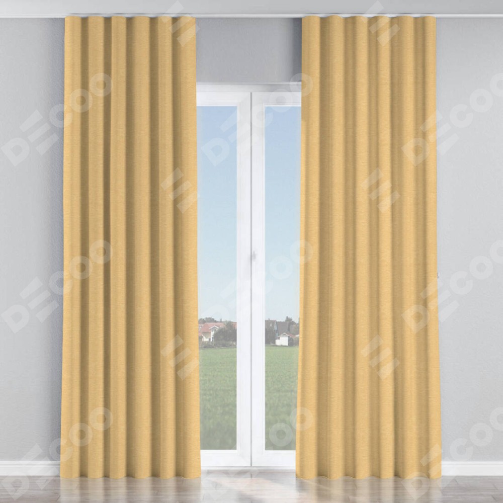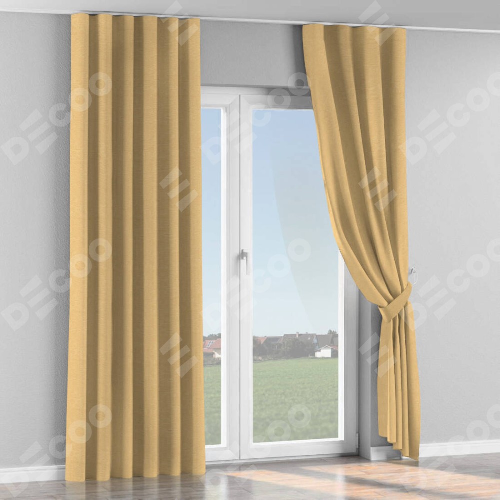 Комплект прямых штор, от производителя «Cortin», пошиты из ткани софт однотонный бежевый, артикул ткани 4202 05. С изнаночной стороны в верхней части штор пристрачивается шторная лента с декоративными складками «Волна». Для создания элегантных складок прямые шторы шьются по стандарту с коэффициентом 1:2 (на 100 см. ширины проёма 200 см. ширины ткани).