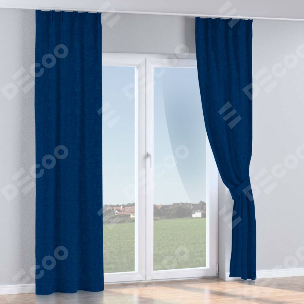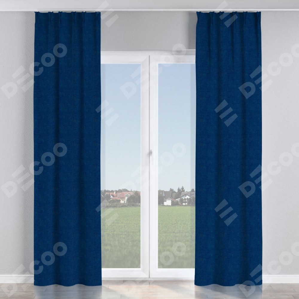 Комплект прямых штор, от производителя «Cortin», пошиты из ткани софт однотонный синий, артикул ткани 42937. С изнаночной стороны в верхней части штор пристрачивается шторная лента с декоративными складками «Кустик». Для создания элегантных складок прямые шторы шьются по стандарту с коэффициентом 1:2 (на 100 см. ширины проёма 200 см. ширины ткани).